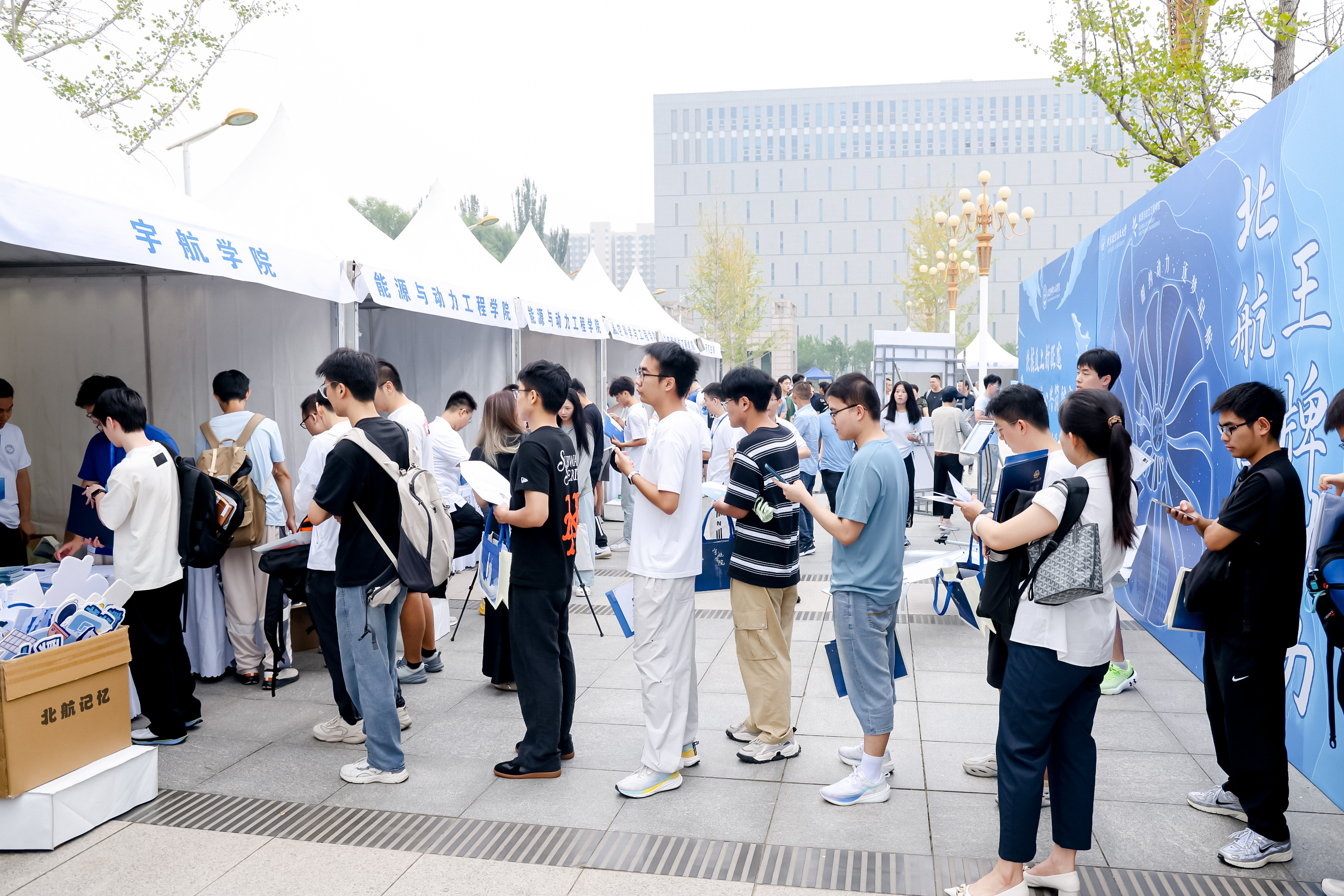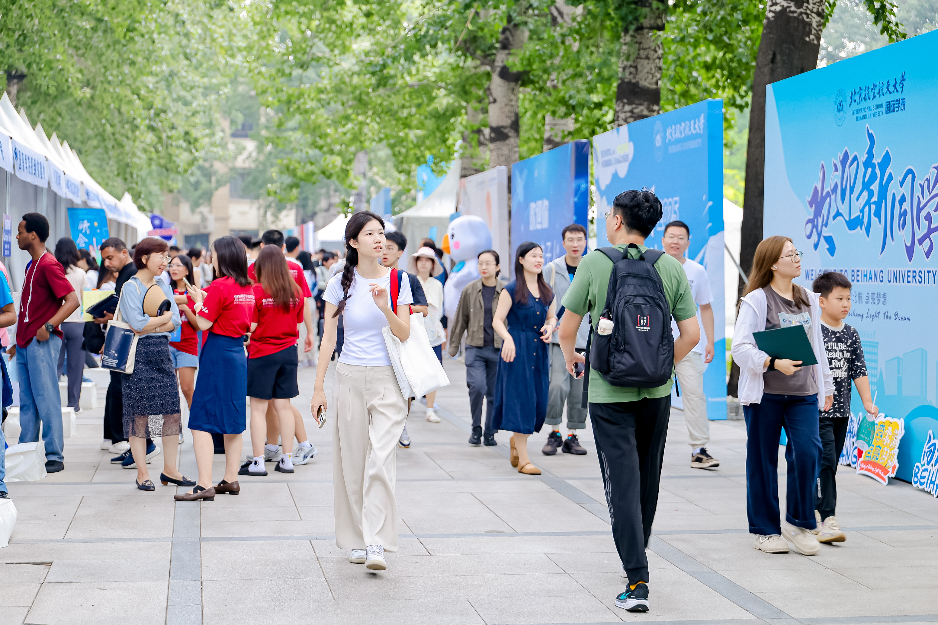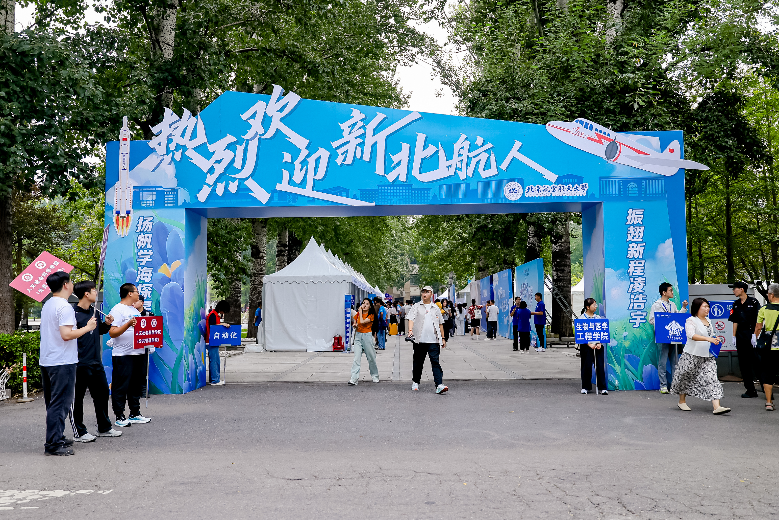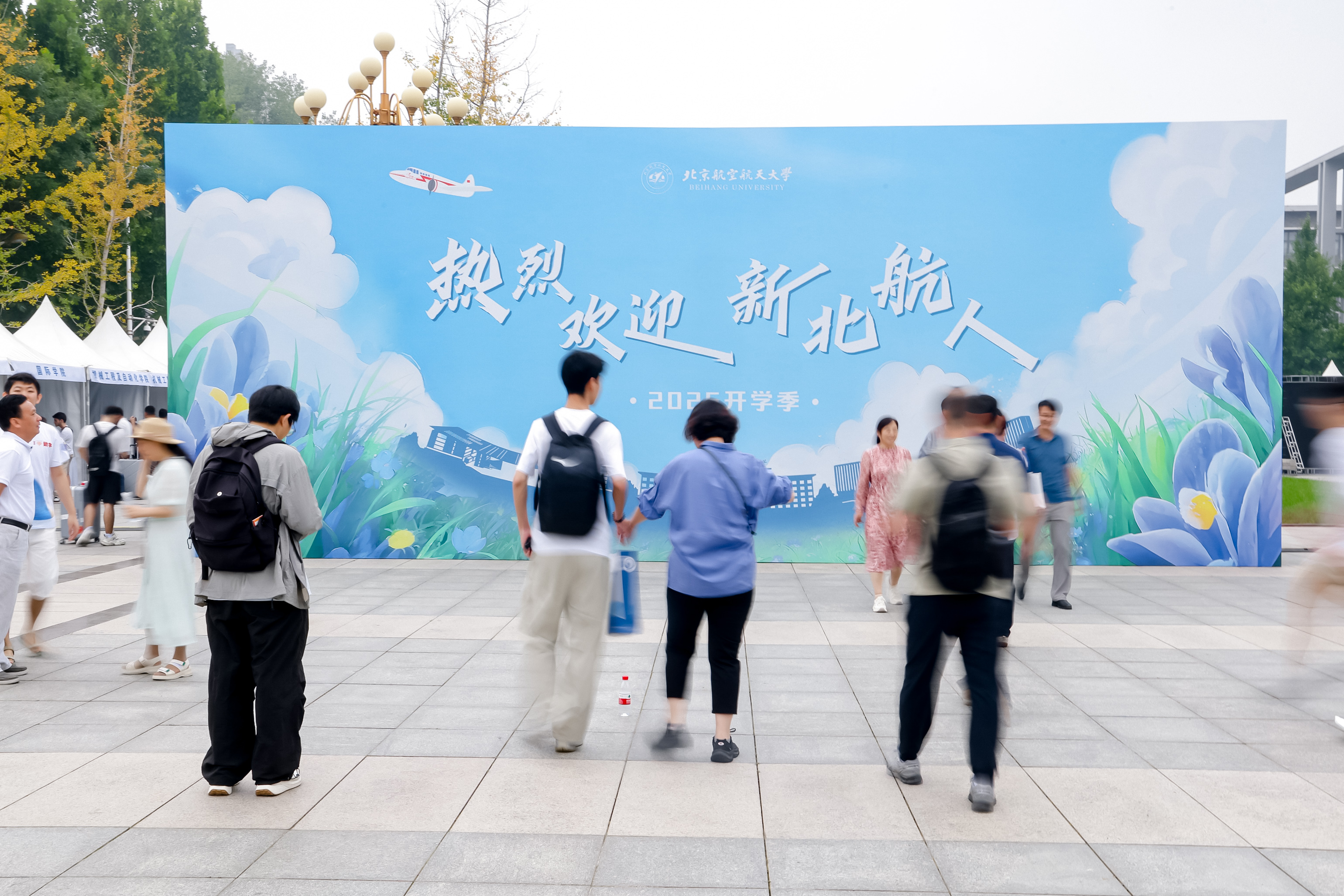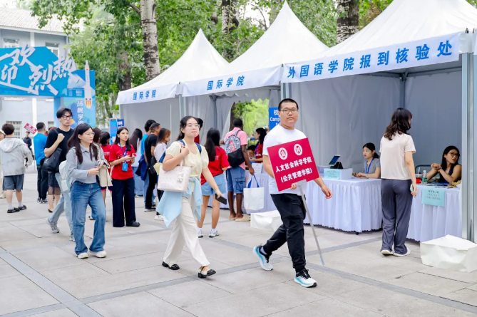 北航新闻网9月5日电(记者 任和 通讯员 王婧仪/文 记者 邸白鹭/摄影)金秋时节,北京航空航天大学迎来8751名2025级研究生新生。今年,北航迎新工作在北京、杭州两地三校园开展,迎新现场分别设置在学院路校区求是广场、沙河校区世纪之声广场、杭州国际校园师生服务大厅。