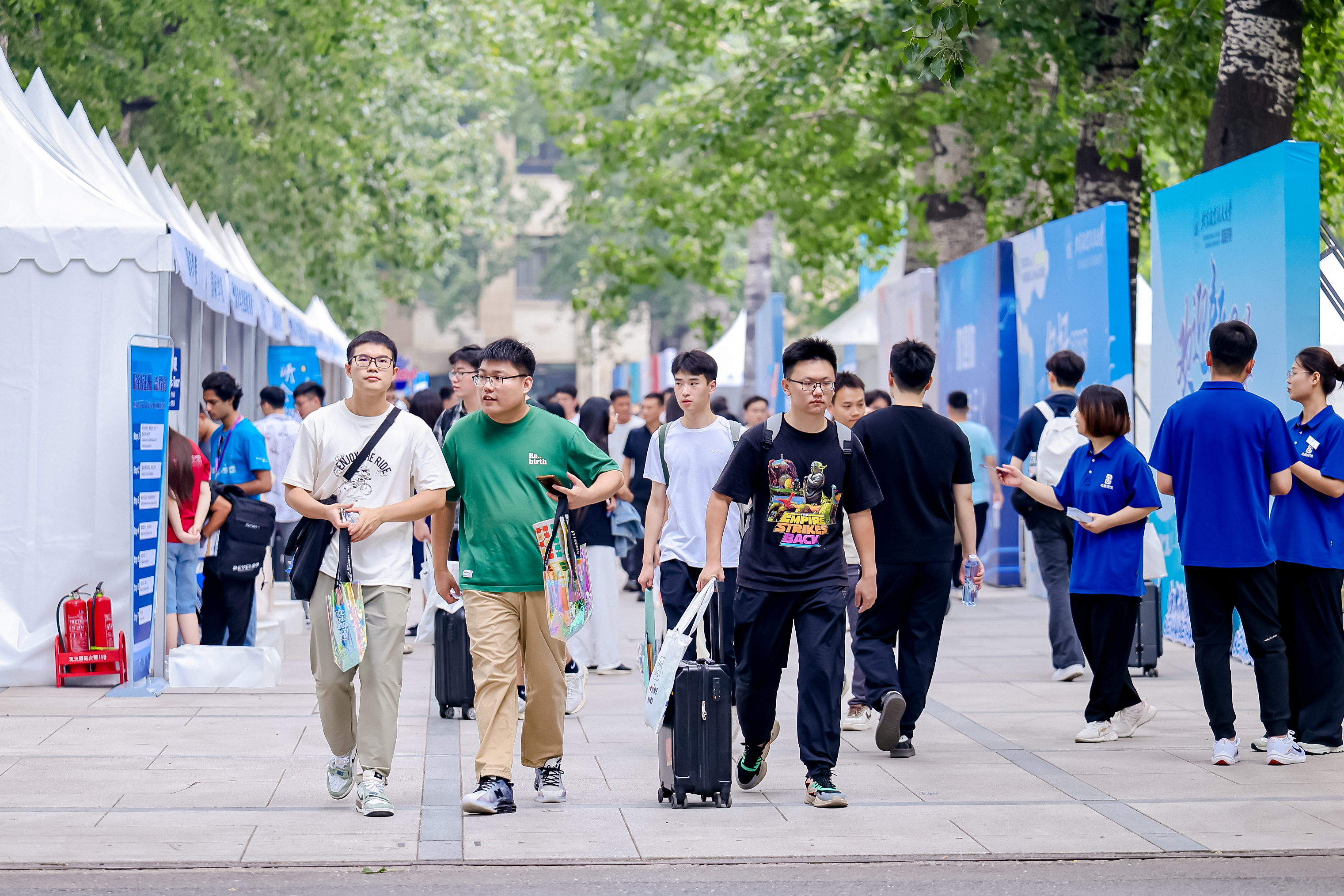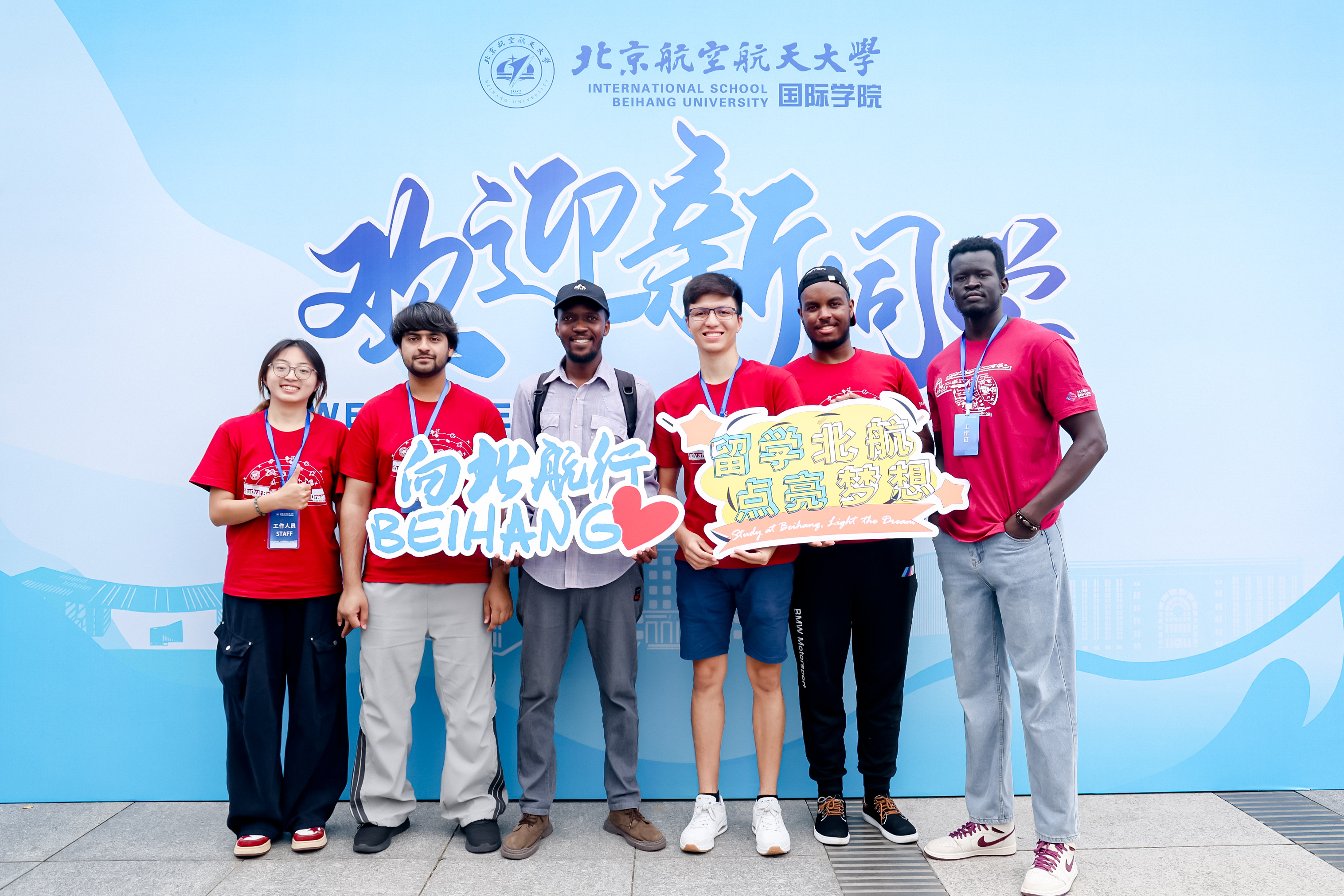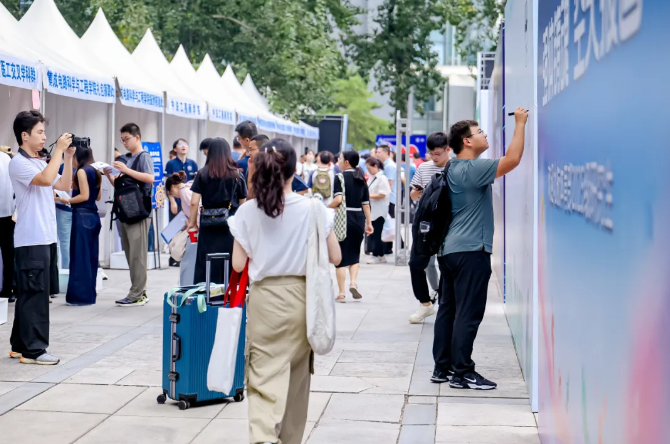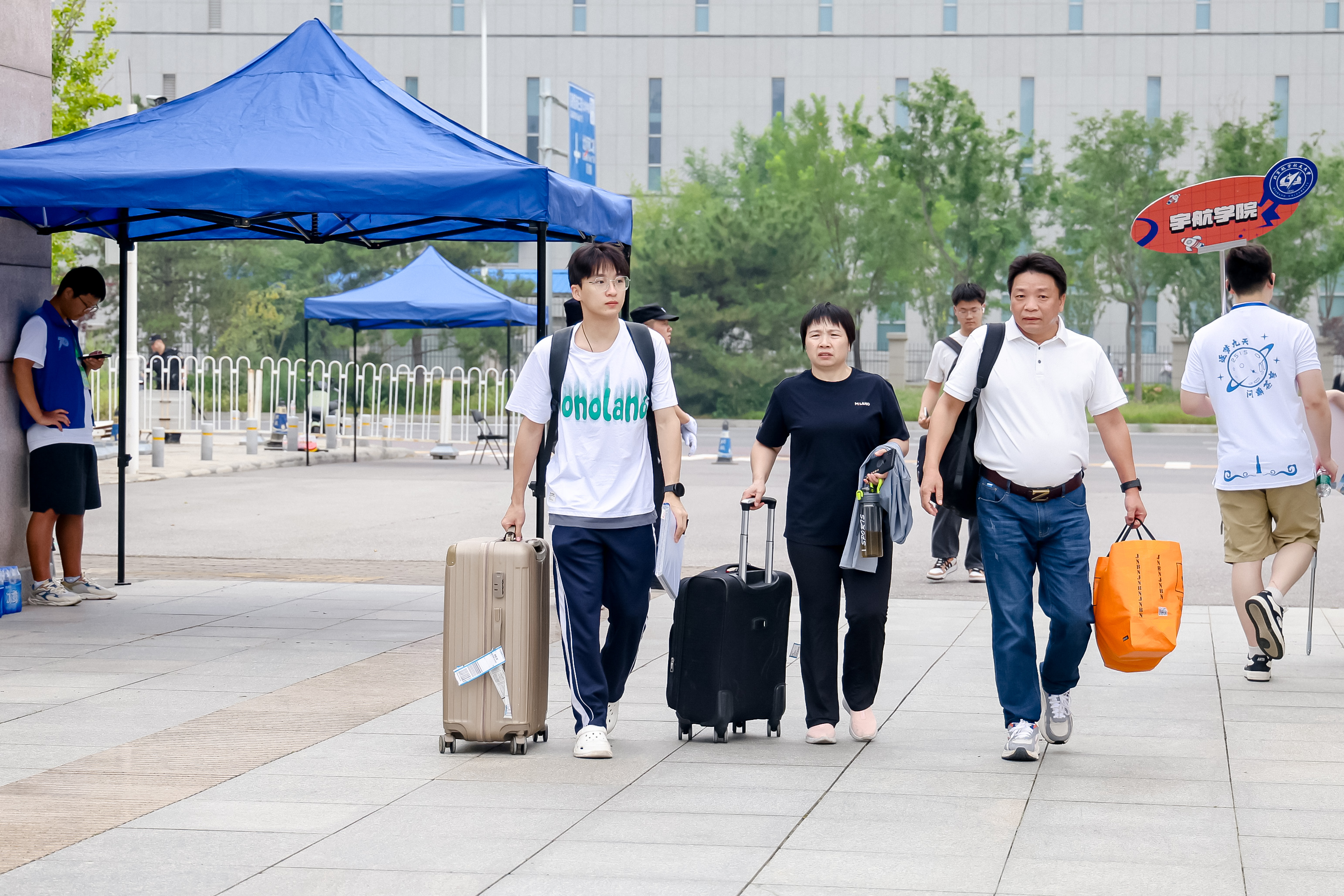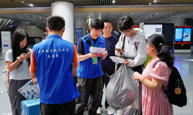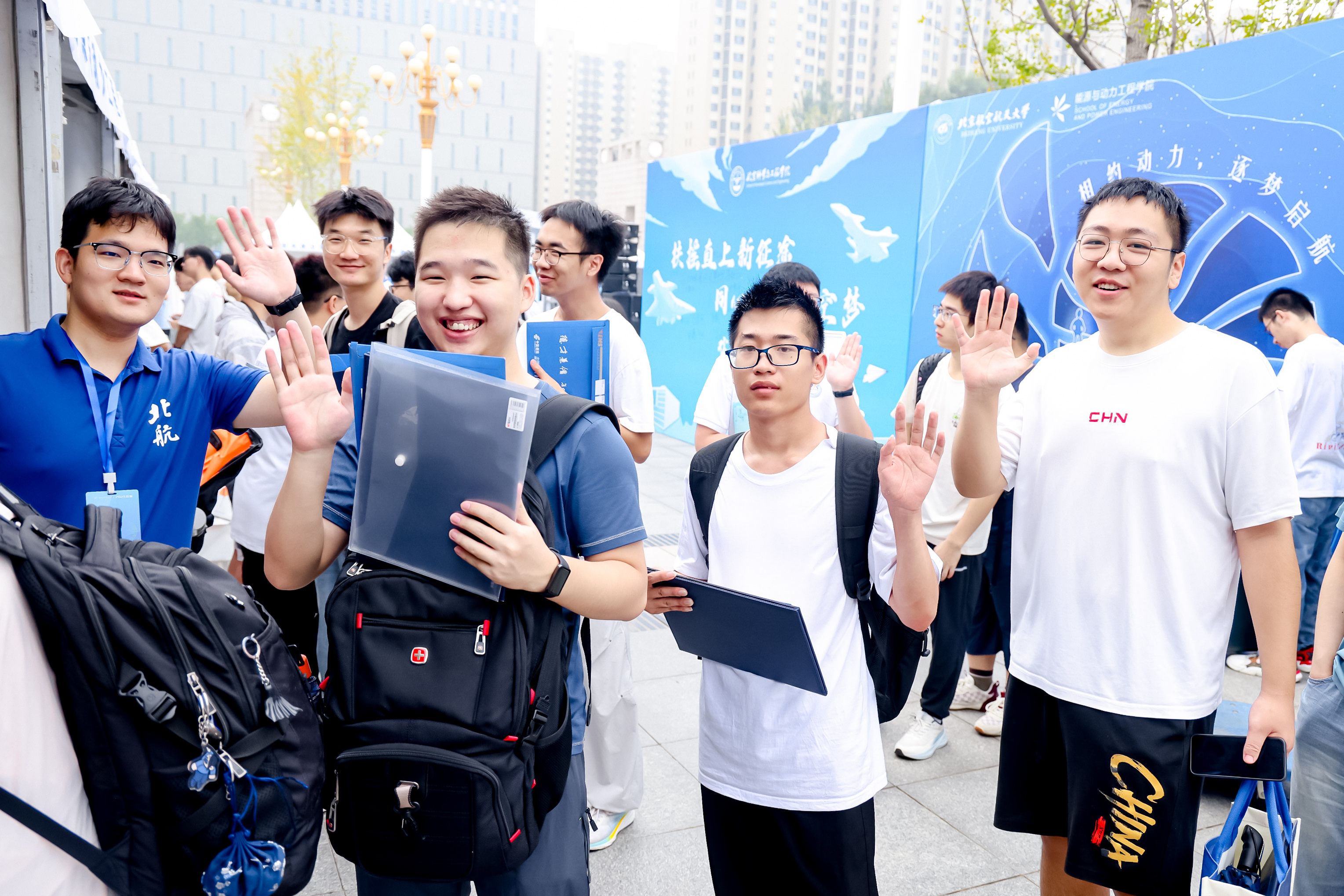 北航新闻网9月5日电(记者 任和 通讯员 王婧仪/文 记者 邸白鹭/摄影)金秋时节,北京航空航天大学迎来8751名2025级研究生新生。今年,北航迎新工作在北京、杭州两地三校园开展,迎新现场分别设置在学院路校区求是广场、沙河校区世纪之声广场、杭州国际校园师生服务大厅。