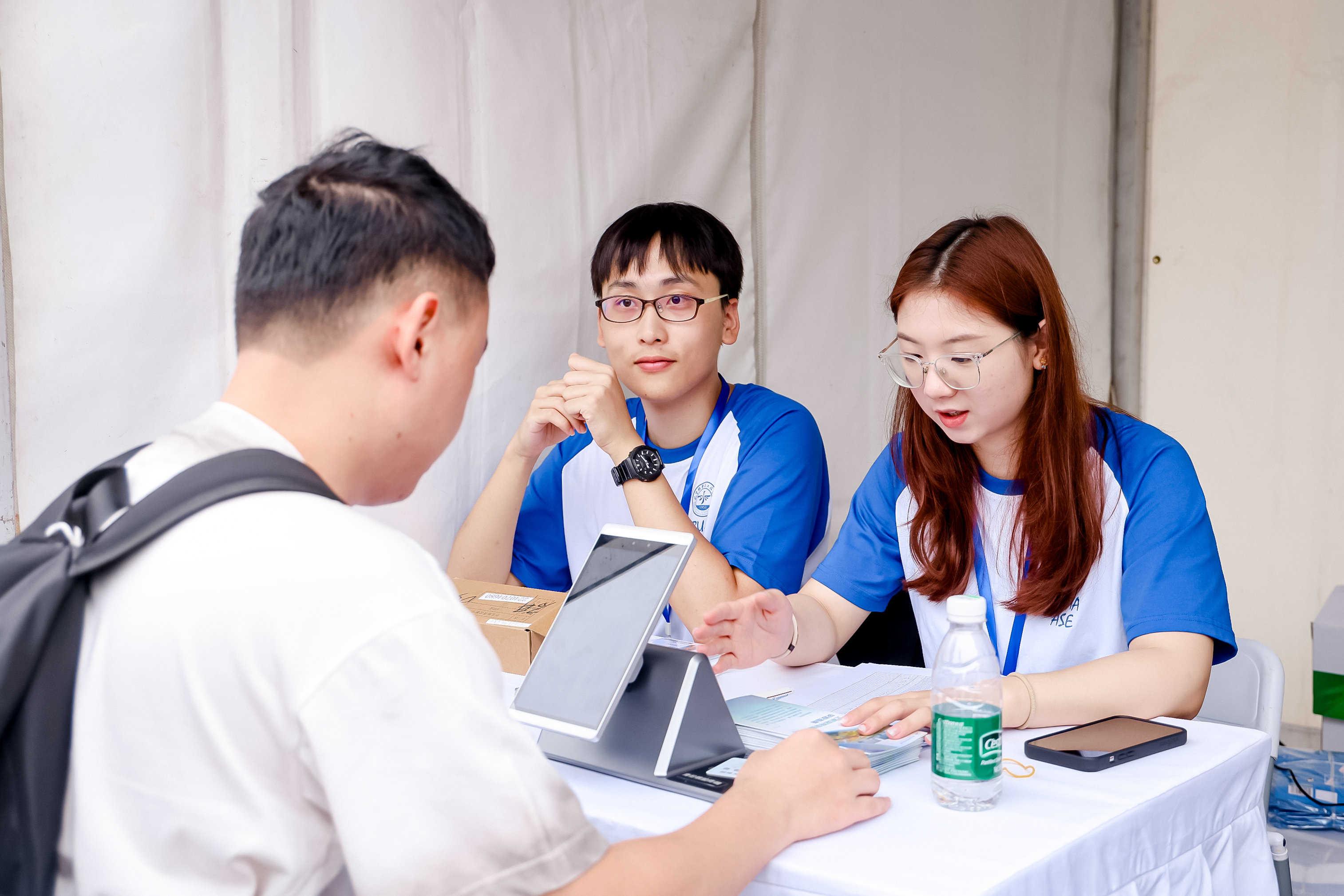 本次迎新以“安全、温馨、细致、有序”为原则,全面贯彻“以学生为中心”的服务理念,推出多项暖心举措:在各大火车站设立接站点,为新生提供便捷到校服务;迎新现场集成学费缴纳、绿色通道、户口迁移、校园服务、银行卡办理等一站式服务窗口,大幅提升办理效率;通过科学规划入校路线与报到流程,全力保障迎新期间的安全与秩序。