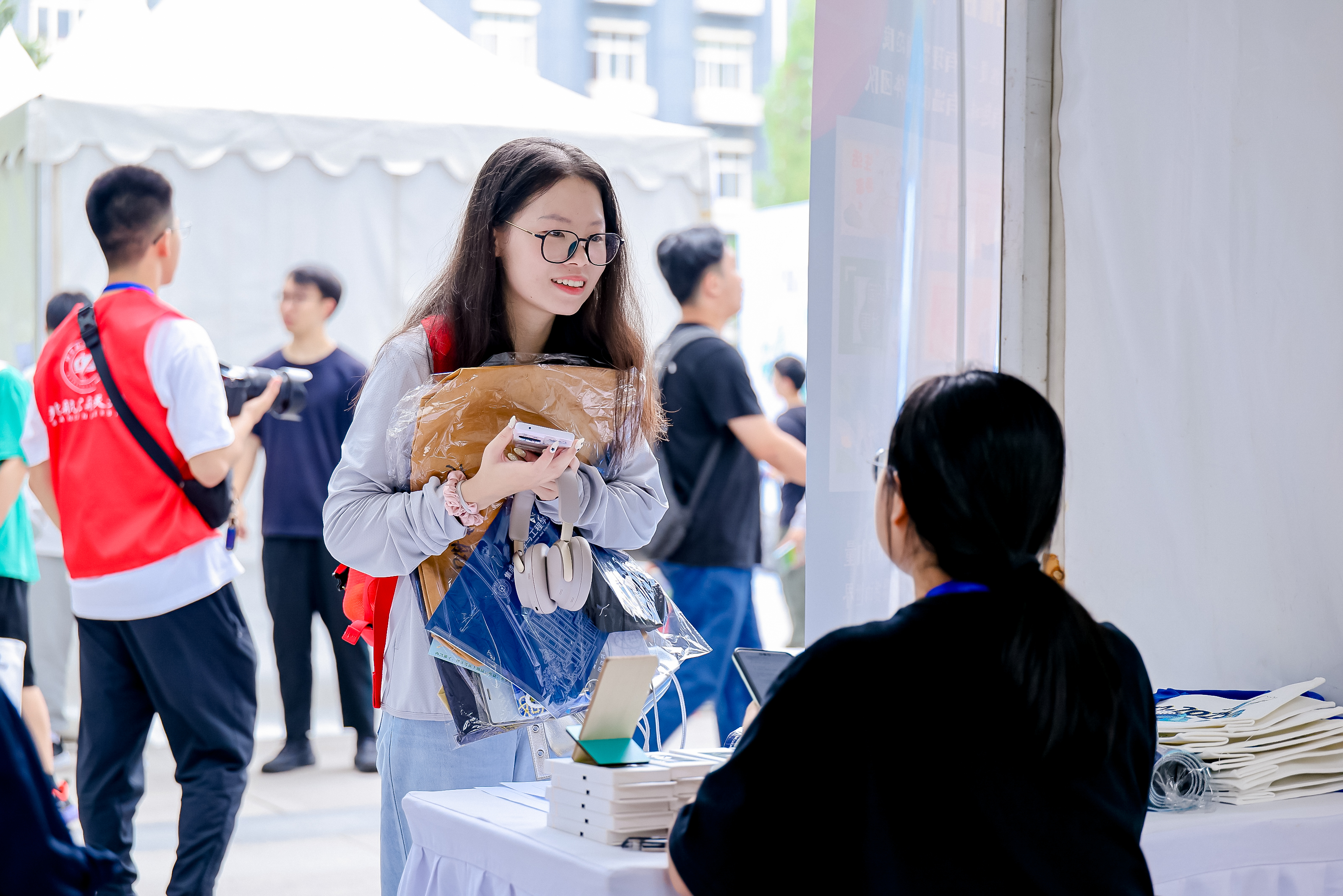 各学院结合自身特色,精心设计了丰富多样的迎新活动。新生们和学院吉祥物一起, 在具有学院特色的展板前签字留影,定格灿烂的笑容,领取特色的迎新礼物。