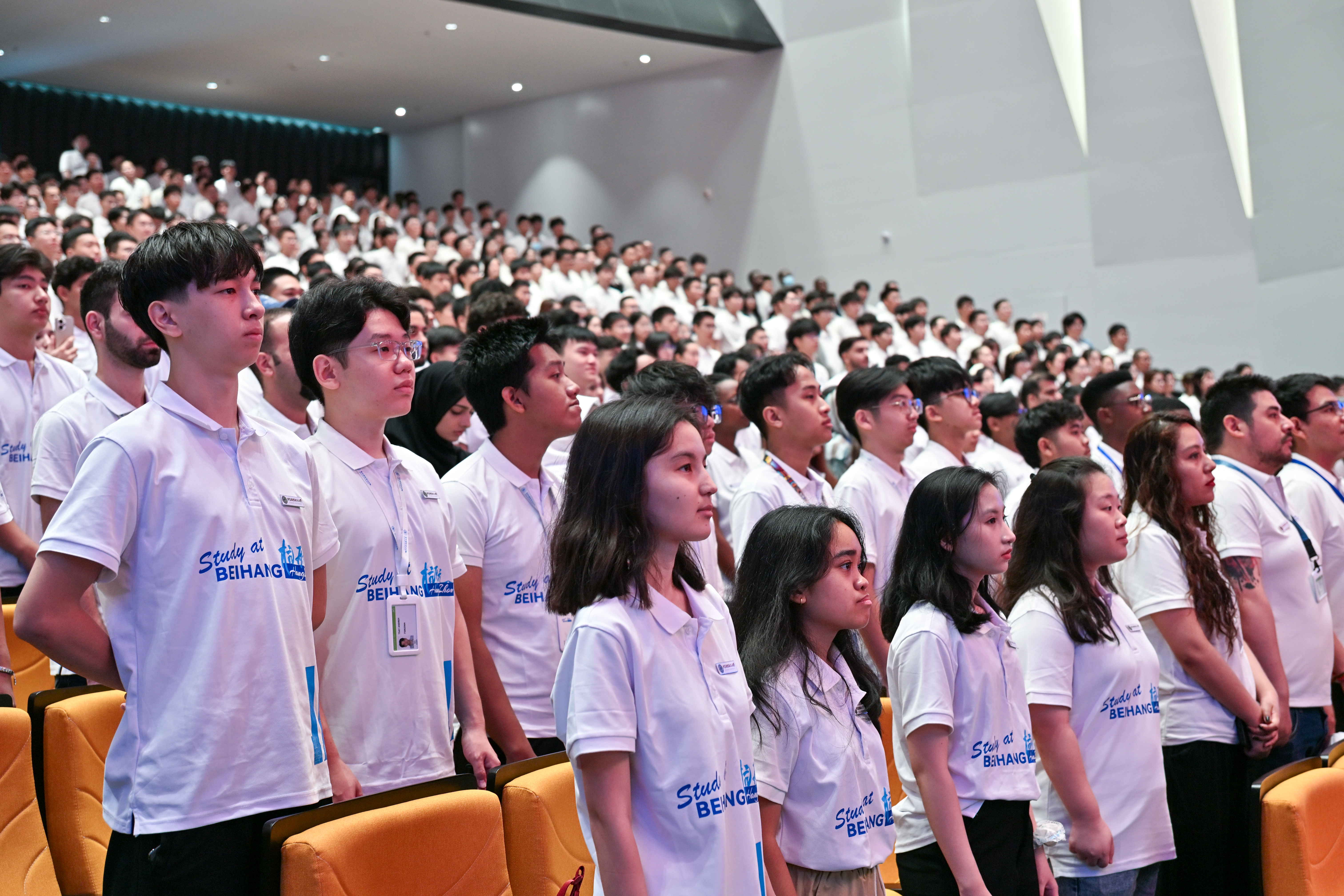 校歌铿锵,余音回响。全体师生齐声合唱校歌《仰望星空》,2025级北航新生已就位,新征程、新使命自今天启航。新时代的北航人,将以实际行动回应时代之问,以奋发有为书写中国式现代化的青春答案!