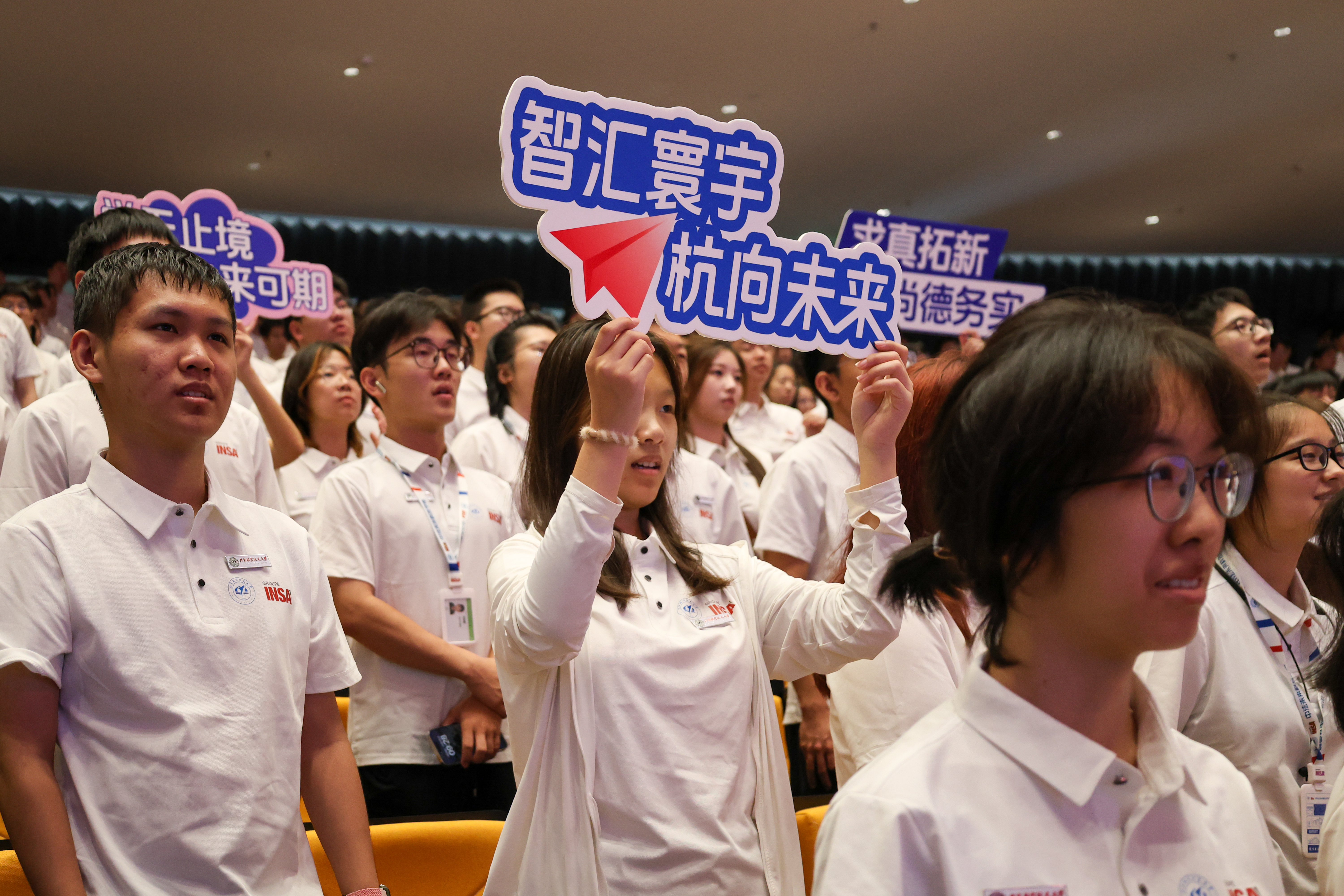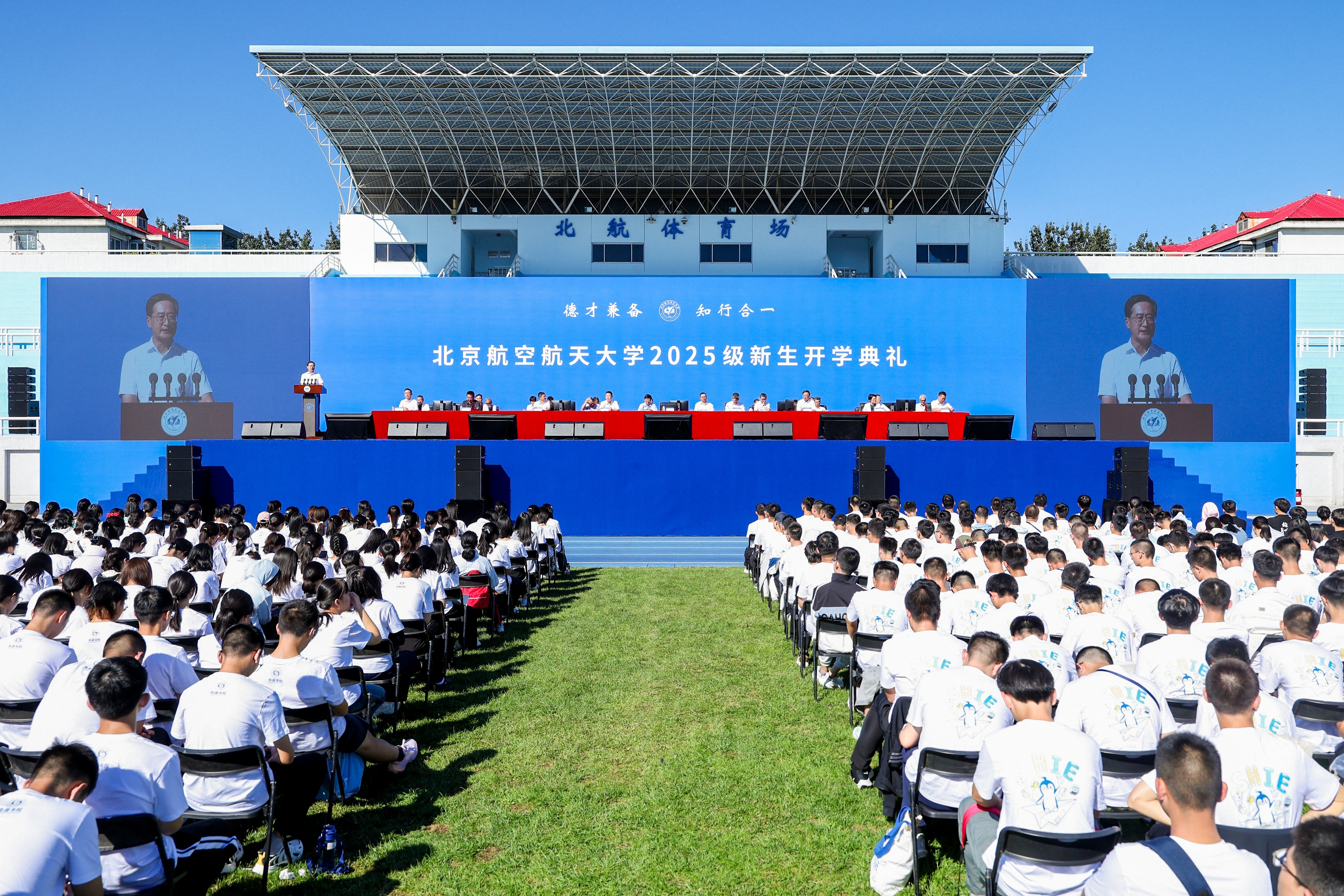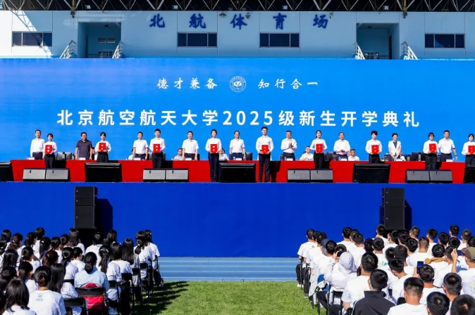北航新闻网9月6日电(记者 王晴 通讯员 李时宇 李思瑶/文 记者 邸白鹭 通讯员 谢雨倩 张智博 周晗 闫瑞津 田雨 廉依霓 秦瑜航 李其玲 张博源/摄影)9月6日上午8时30分,北京航空航天大学2025级新生开学典礼在学院路校区、沙河校区、杭州国际校园同步互动直播举行,4425名本科生、8751名研究生、532名国际学生,共13708名本研新生共聚两地三校园,心怀梦想新启航。