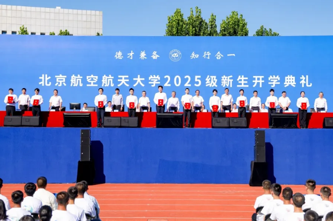 校党委书记赵长禄,校长王云鹏院士,党委副书记刘树春,党委副书记、纪委书记刘洪仓,党委副书记程波,副校长吕卫锋、赵巍胜、吕金虎、邓怡、吴江浩,教师代表、自动化科学与电气工程学院教授焦宗夏院士,校友代表、航天科技集团研究员饶炜等出席开学典礼。校长助理、党委常委,各学院、书院领导,学校机关部处负责人,新生辅导员以及2025级全体本科生、研究生、留学生1万余人共同参加开学典礼。典礼由邓怡主持。