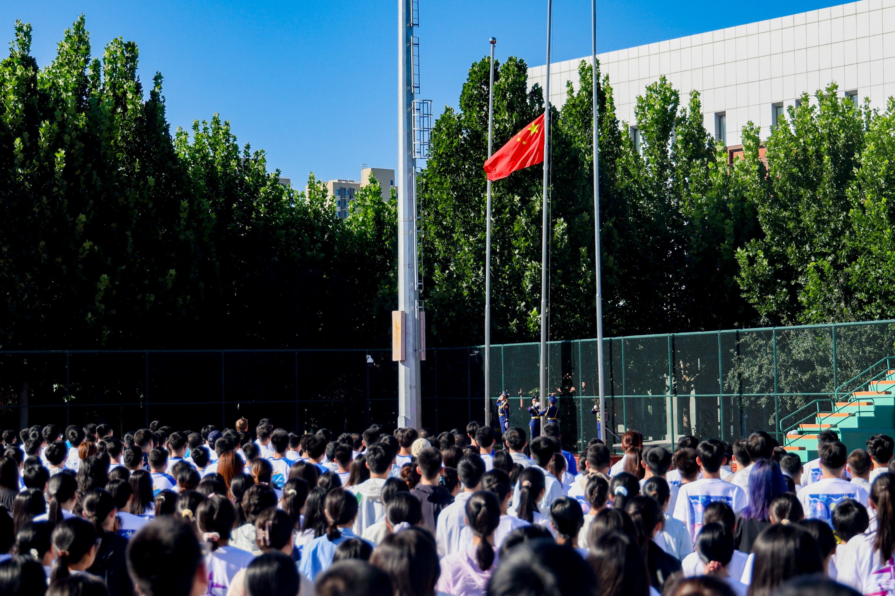 伴随着全体师生齐唱国歌,五星红旗冉冉升起,庄严的升旗仪式拉开了开学典礼的序幕。
