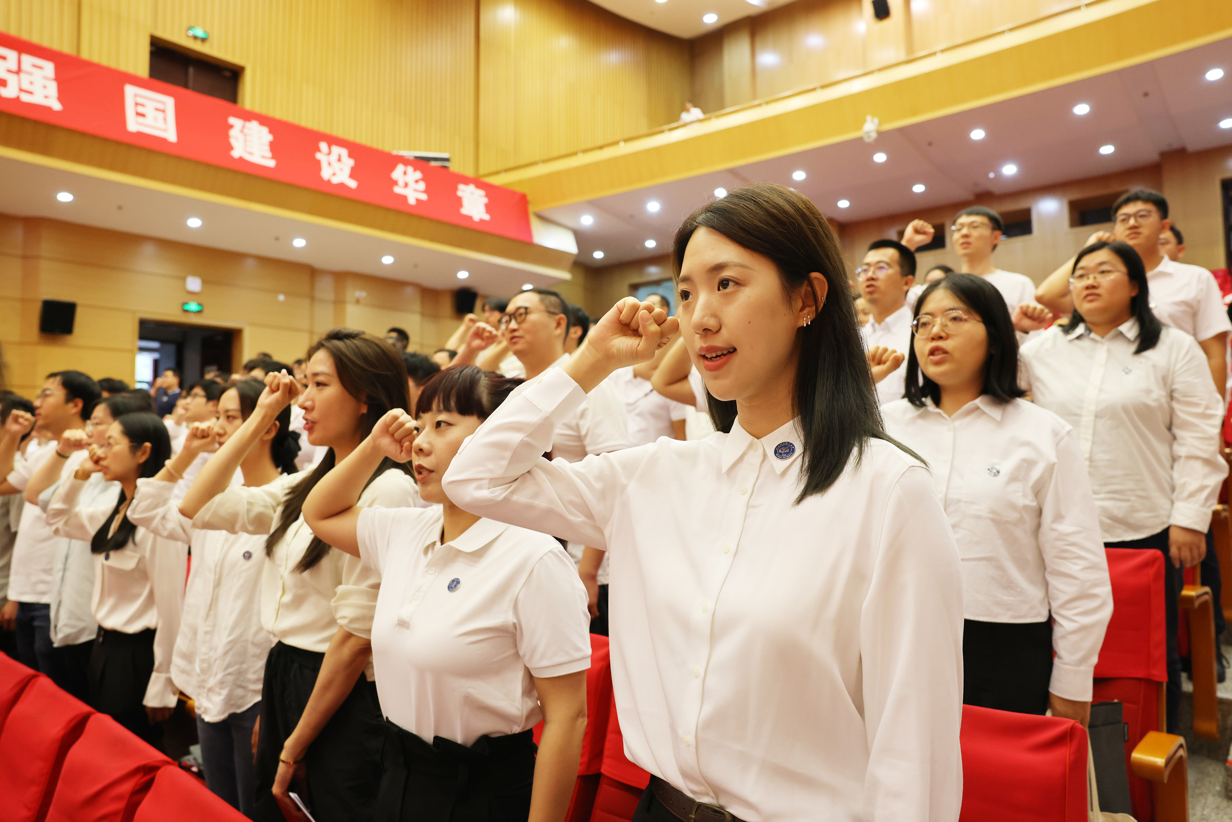宇航学院教授桂海潮带领新进教师进行入职宣誓。