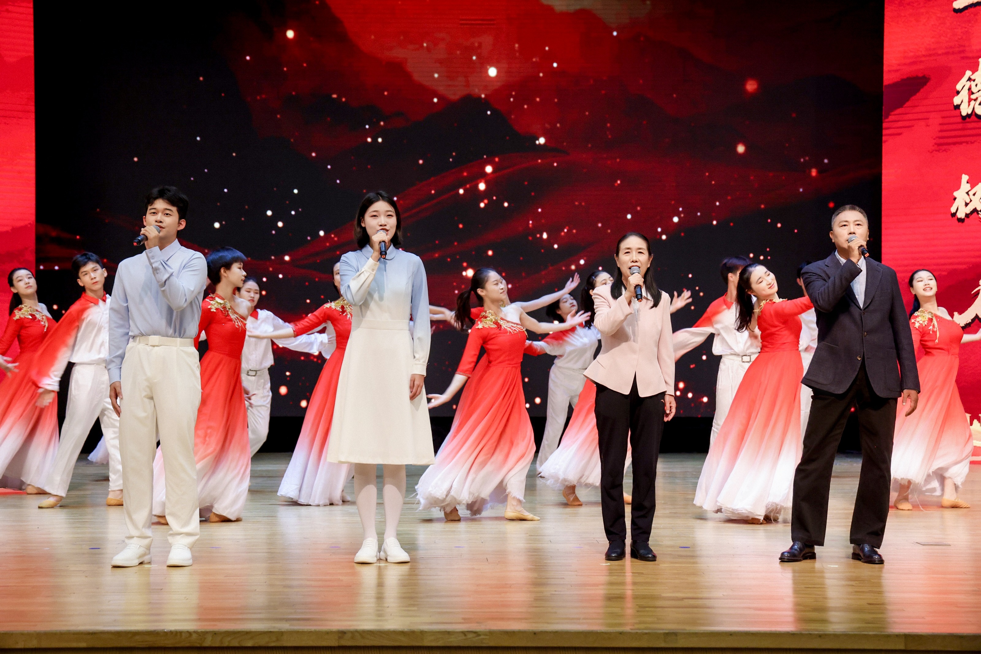 荣休教师代表、从教三十年教师代表与广场合唱学生代表共同带来情景表演《山河回响》