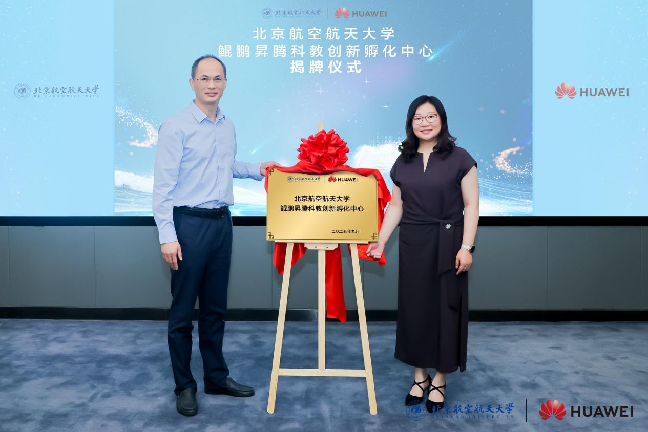 北航副校长邓怡与华为计算产品线副总裁朱照生为孵化中心揭牌