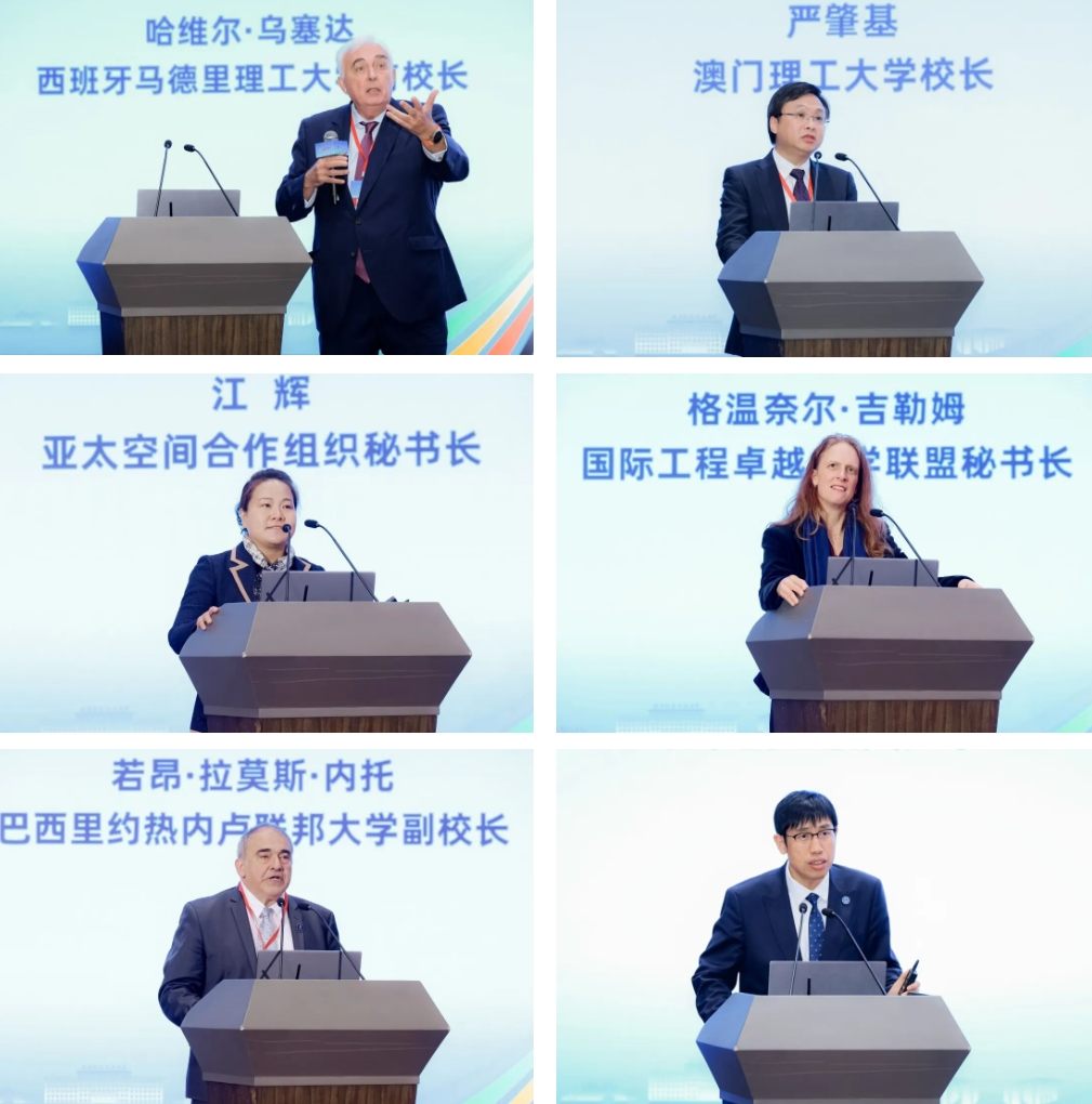 开幕式前,王云鹏会见了澳门理工大学校长严肇基(im sio kei),西班牙马德里理工大学前校长哈维尔·乌塞达 (javier uceda),亚太空间合作组织秘书长江辉,巴西里约热内卢联邦大学副校长若昂·拉莫斯·内托(joão ramos torres de mello neto),t.i.m.e.国际工程卓越大学联盟秘书长格温奈尔·吉勒姆(gwenaëlle guillerme),马德里理工大学前副校长、墨西哥蒙特雷理工大学前副校长何塞·派斯(josé manuel páez),韩国延世大学副校长宋寅汉(in han song),巴西圣卡塔琳娜联邦大学副校长雅克·米克(jacques mick),香港理工大学协理副校长董澄(cheng dong),肯尼亚内罗毕大学副校长阿尤布·吉陶(ayub gitau),巴西科学院院士、巴西圣保罗大学教授胡利奥·罗马诺·梅内吉尼(julio romano meneghini),加拿大工程院院士、瑞典皇家理工学院教授王力翚(lihui wang),欧洲科学院院士、波兰雅盖隆大学教授马切伊·奥戈扎莱克(maciej ogorzalek),西班牙皇家工程院院士、西班牙塞维利亚大学教授阿尼巴尔·奥列罗·巴图隆(anibal ollero baturone),意大利米兰理工大学教授、欧洲可靠性与安全性学会前主席恩里科·齐奥(enrico zio)等来自西班牙、巴西、墨西哥、中国澳门、中国香港等国家和地区的18位高校领导和国际专家。
