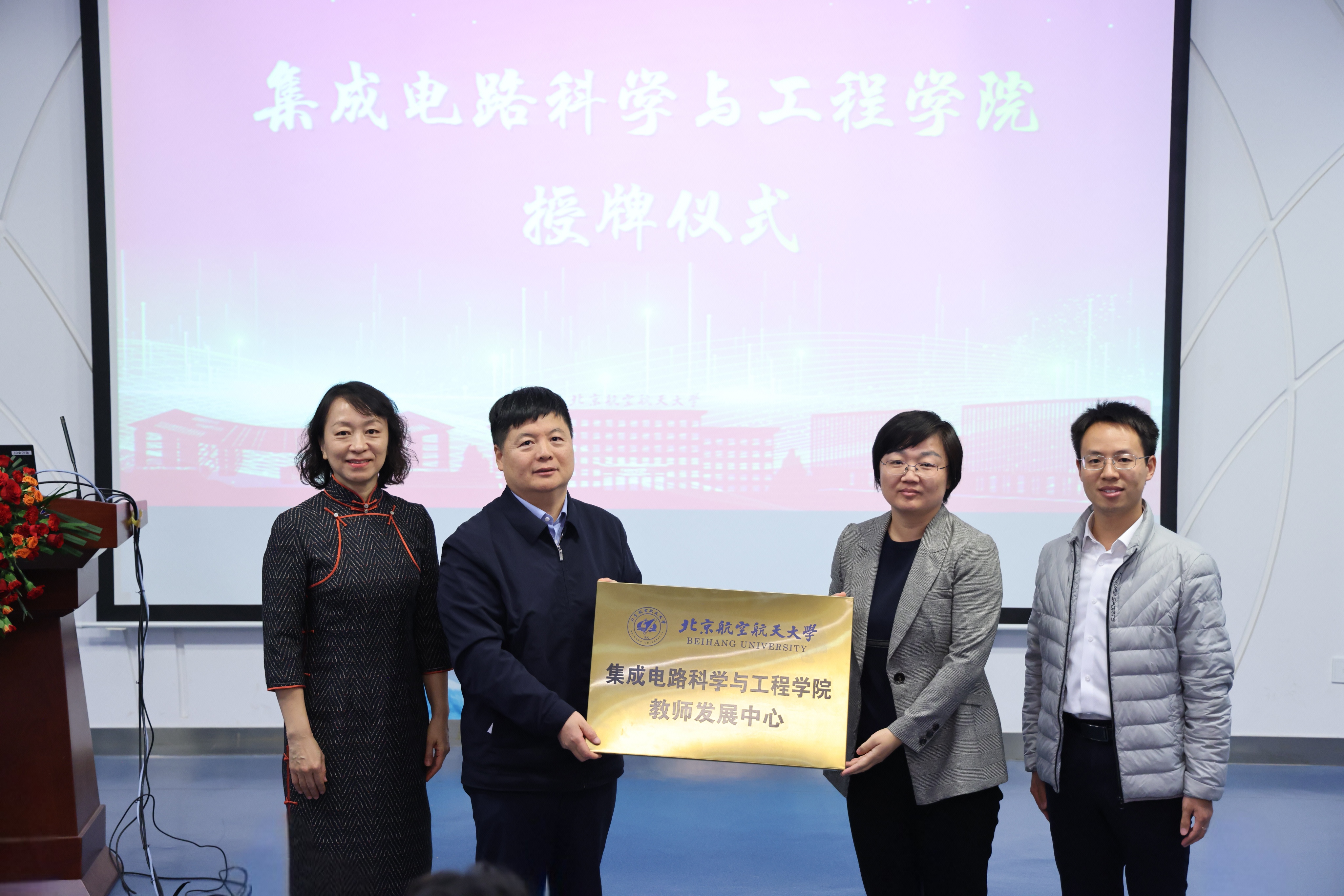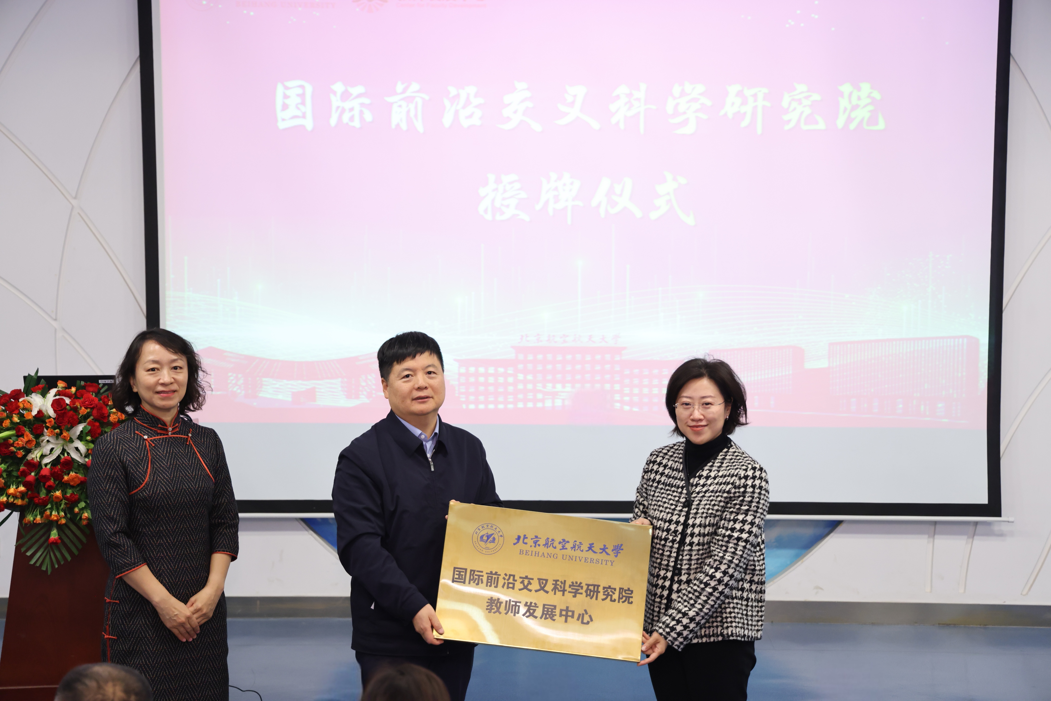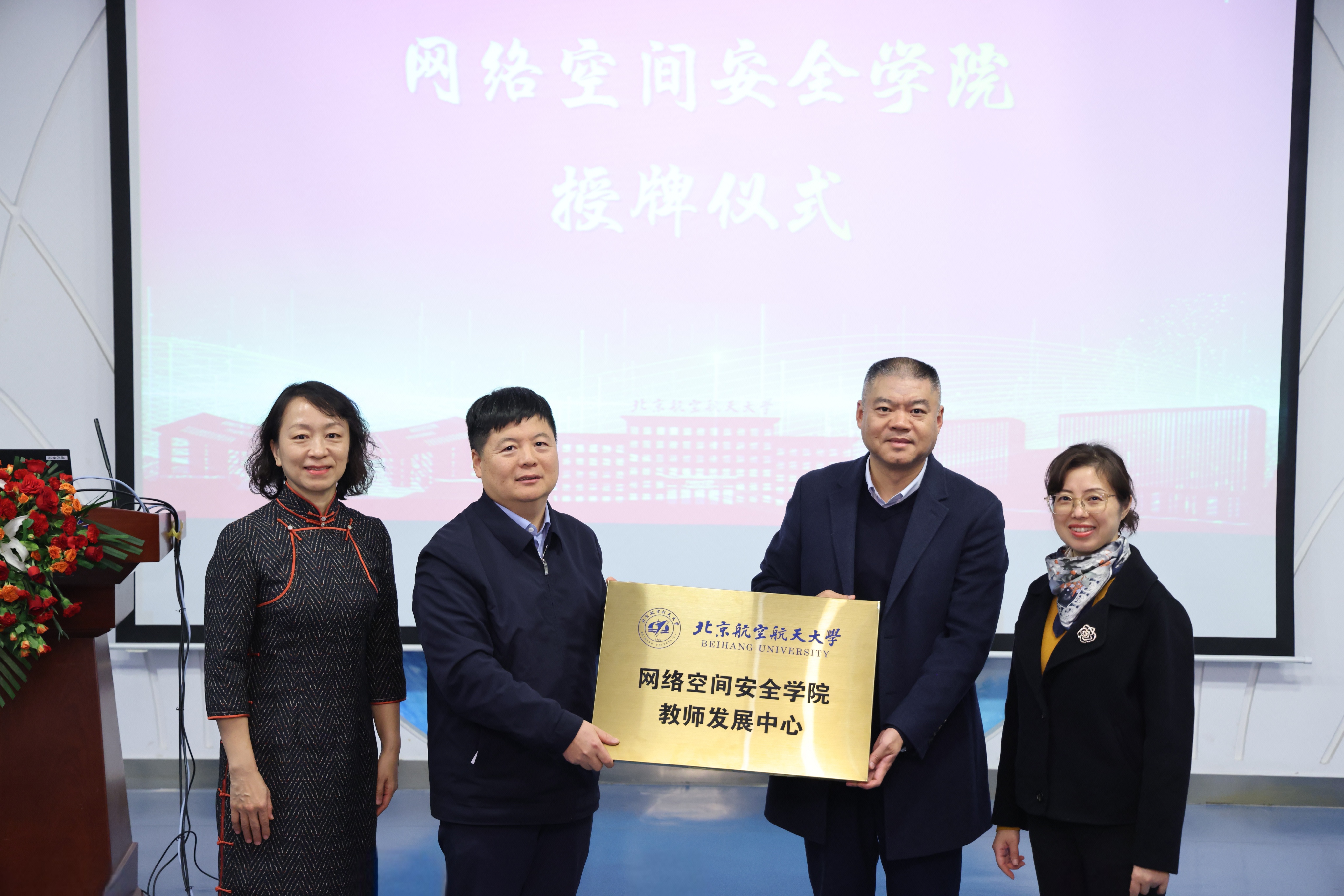 随后,闫晓军为网络空间安全学院、国际前沿交叉科学研究院、集成电路科学与工程学院三个学院教师发展中心授牌。