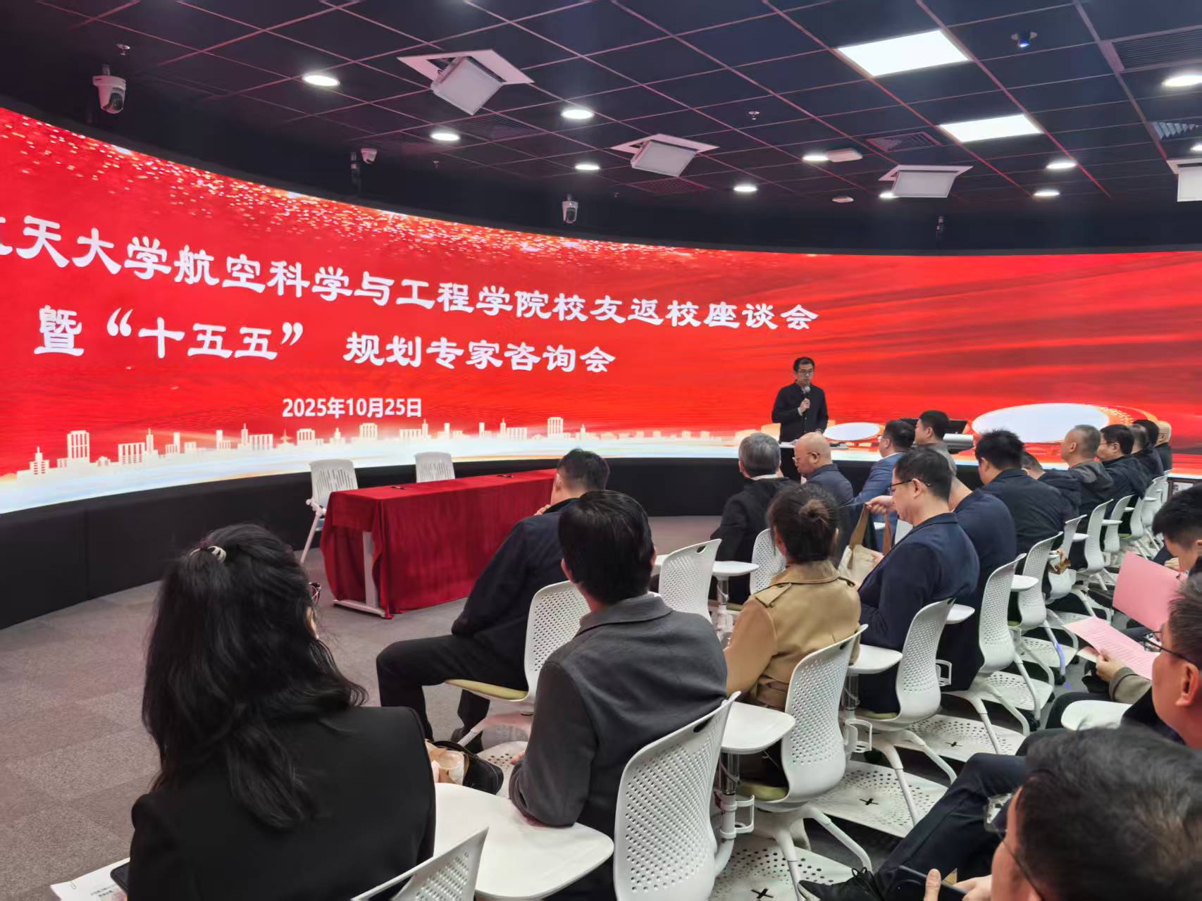 北航新闻网10月27日电(通讯员 马力菲)2025年10月25日校庆日当天,航空科学与工程学院(以下简称航空学院)在北航沙河校区科研2号楼107智慧教室召开校友返校座谈会暨“十五五”规划专家咨询会。本次会议以“凝聚校友力量、深化校企合作、擘画‘十五五’新局”为主题,包含校企合作协议互换、“航空之友”奖学金颁发、企业导师聘用、“十五五”规划研讨等内容。