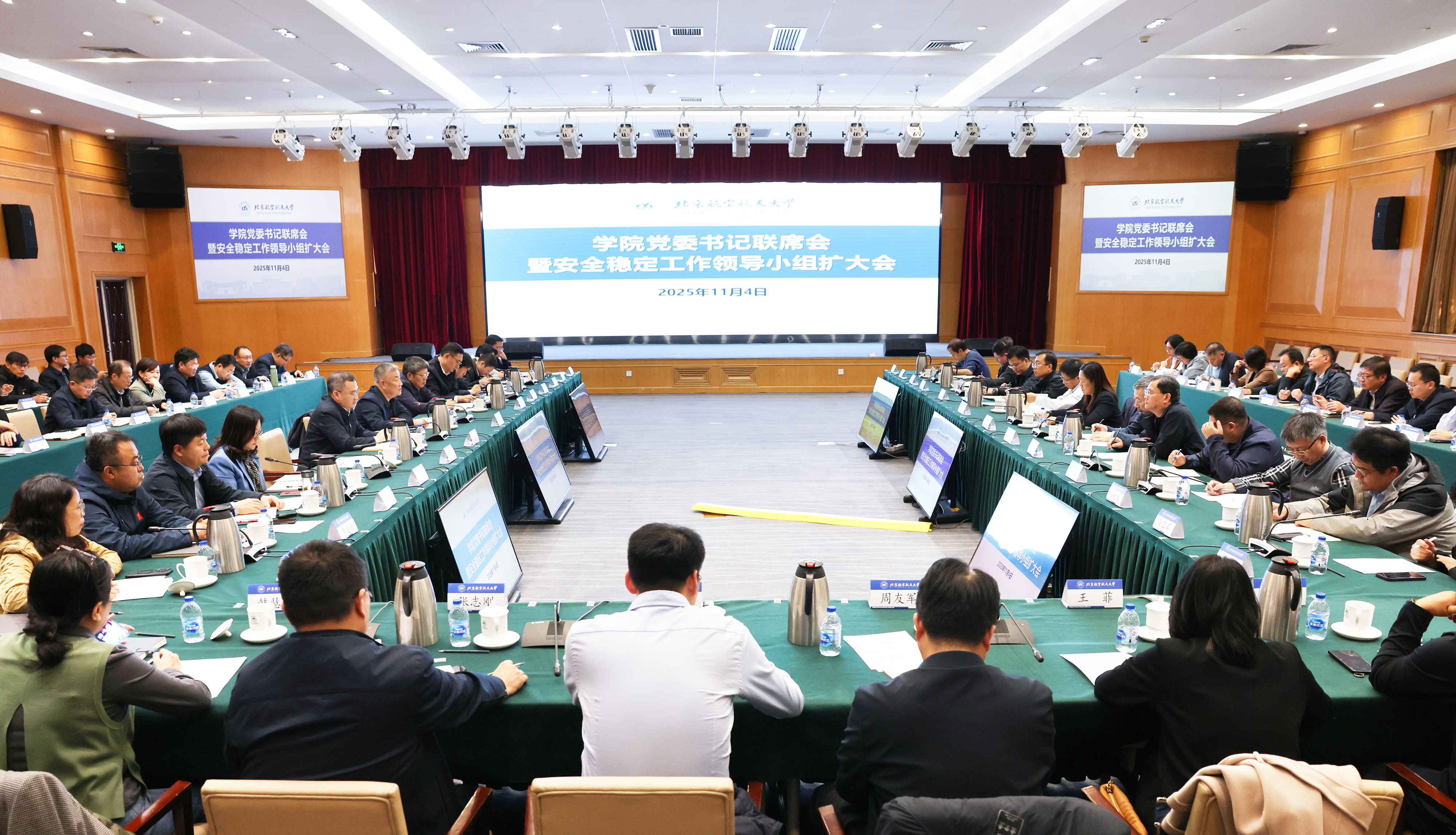 北航新闻网11月5日电(记者 任和/文 邸白鹭/摄影)11月4日,学校在学院路校区如心会议中心大报告厅召开学院党委书记联席会暨安全稳定工作领导小组扩大会,党委书记赵长禄和全体在校校领导,各学院党委(党总支)书记,党政机关、服务支撑机构负责人参加会议。会议由赵长禄主持。