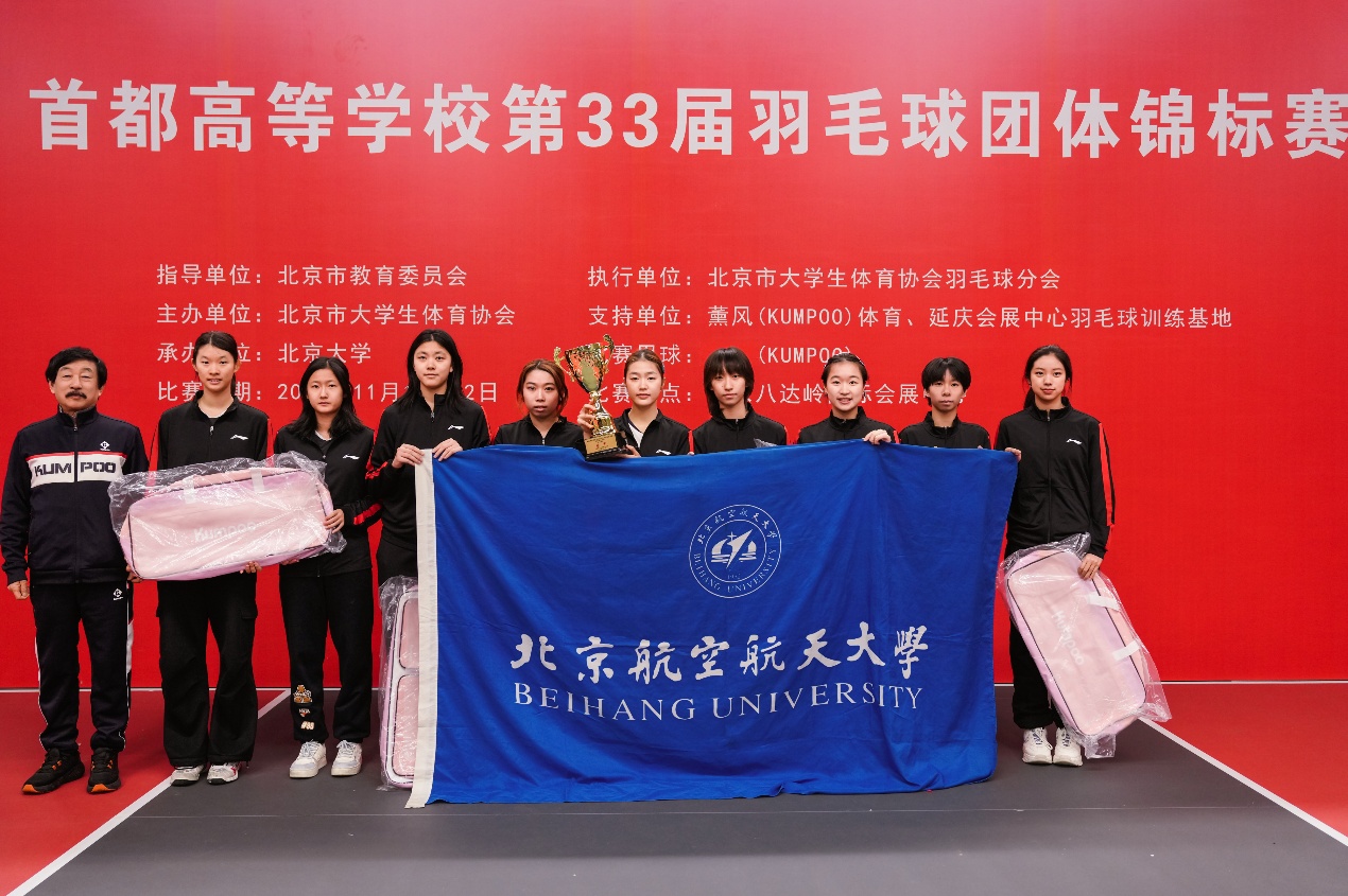 北航新闻网11月7日电(通讯员 王子翀)11月1日,首都高校第33届羽毛球锦标赛在北京八达岭国际会展中心举办,体育部付庆镕、石磊和樊秋月三位老师带领我校羽毛球队参赛。队员们团结一心、努力拼搏,最终荣获女团冠军和男团亚军。