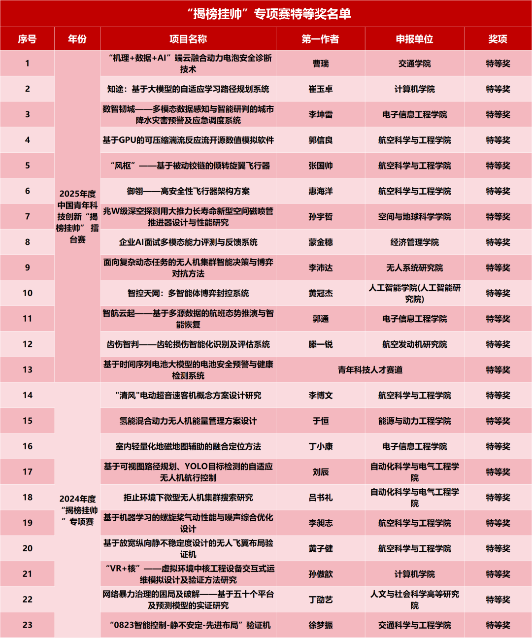 北京航空航天大学获奖项目一览