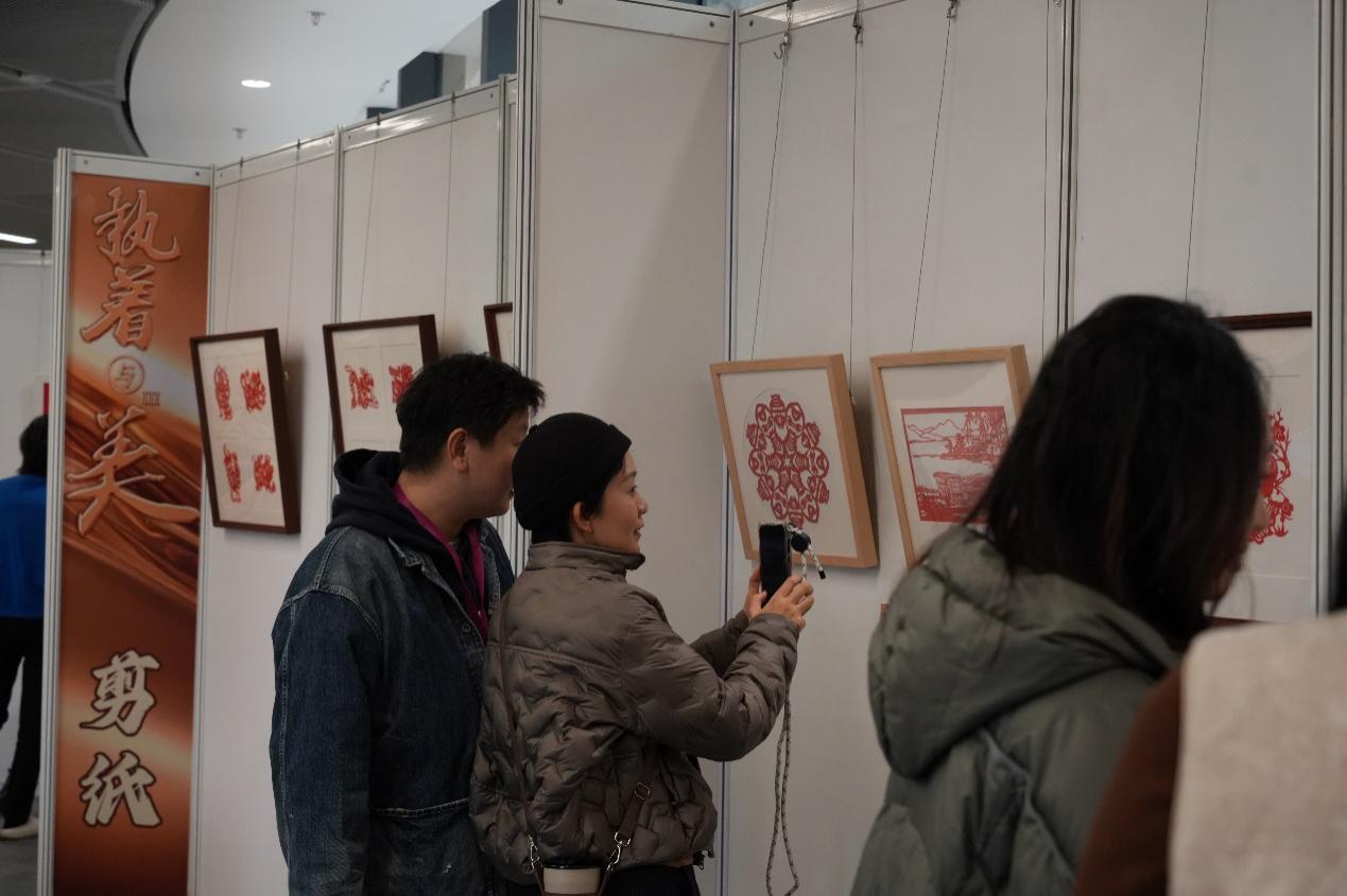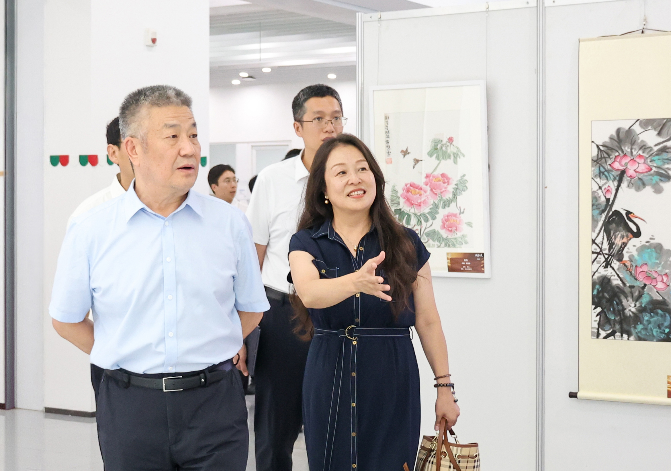 开幕式后,与会教职工代表率先有序参观展览。本次展览共展出180件北航一线教职工作品,涵盖油画、素描、水彩、彩铅、国画、书法、剪纸、插花、摄影等多个品类,每一件作品都凝聚着教职工在笔墨、光影、手作中传递的艺术情怀,以及对美好生活的真挚向往。大家在作品前驻足交流,从笔触、构图到创作背后的故事,沉浸式感受同事们在美育滋养下的艺术表达与生活热爱。