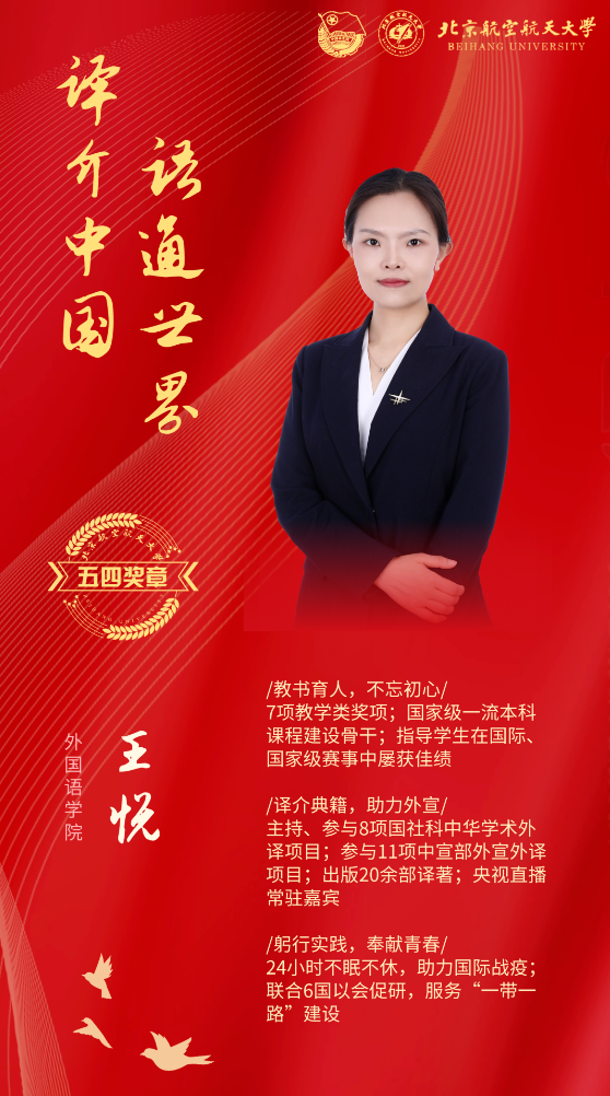在北航,有这样一位青年教师,她以俄语为媒,搭建“俄语 航天 文化”的传播体系,为俄语世界打开一扇读懂中国航天的窗;她多次亮相央视俄语频道,用专业而亲切的解读,向世界讲述中国航天的壮阔征程;她坚守立德树人的讲台,在典籍外译与人才培养中默默织就中外文化交流的纽带。她是北航外国语学院副教授王悦。