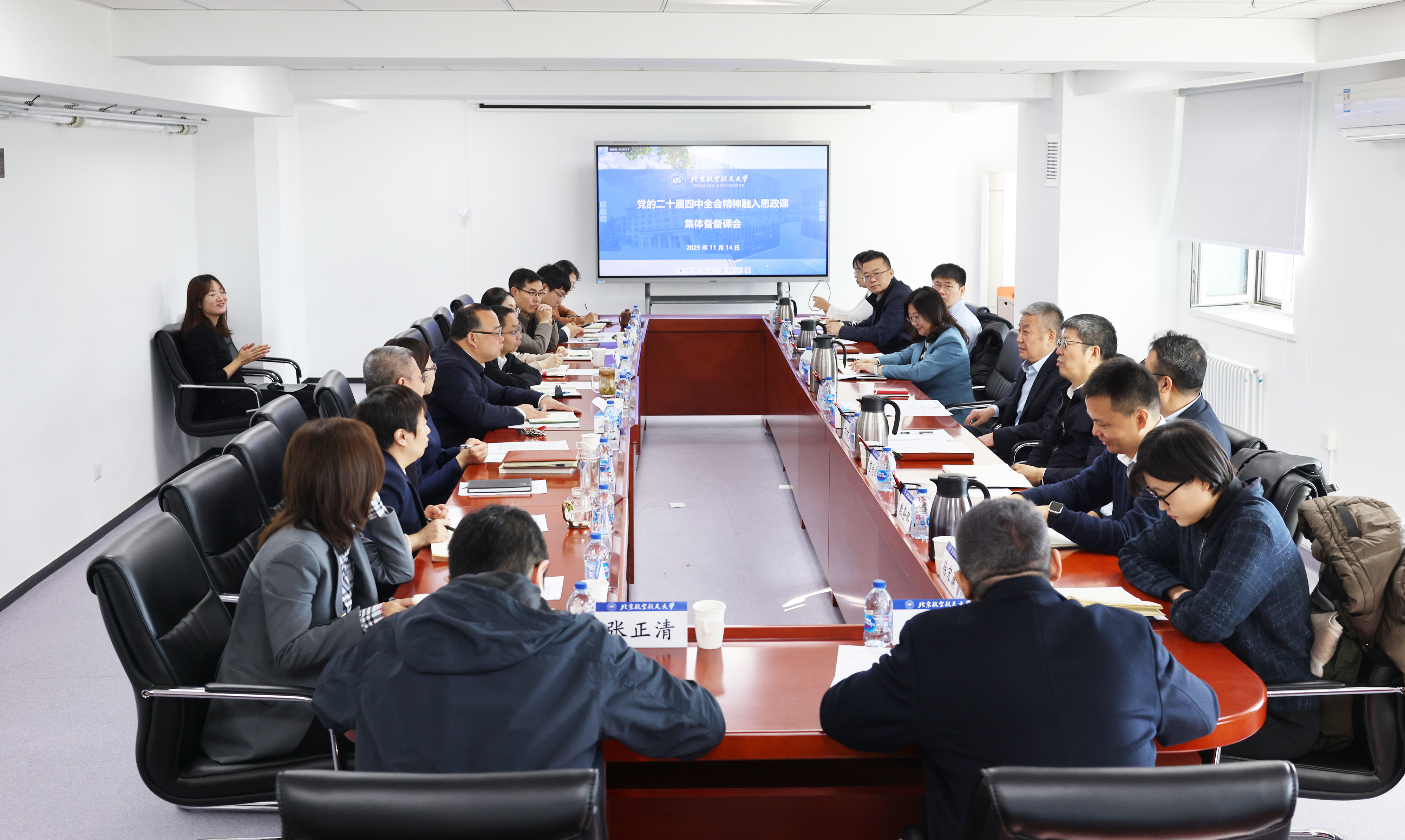 北航新闻网11月15日电(记者 张大伟/文 邸白鹭/摄影) 11月14日上午,学校在学院路校区九号楼814会议室举行“党的二十届四中全会精神融入思政课”集体备课会,推动全会精神进教材、进课堂、进头脑,切实提升思政课时代性、吸引力、感染力。党委书记赵长禄、党委副书记刘树春、副校长邓怡参加备课会。会议由刘树春主持。