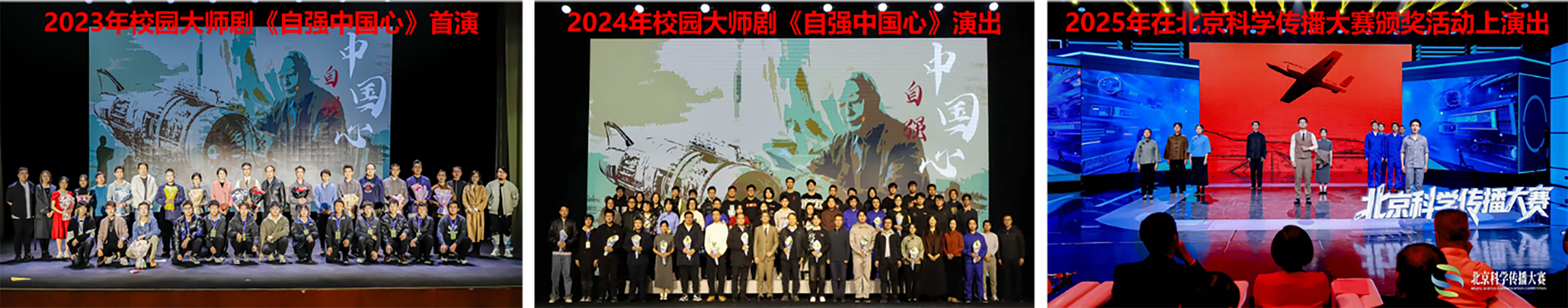 “这场话剧不仅激起了我对航空发动机事业的热爱,更点燃了我内心的爱国激情,我将传承吴大观先生的精神,空天报国,吾辈自强!”冯如书院的郭澍勋同学在观看完《自强中国心》话剧后表示。学院以“中国航空发动机之父”吴大观为原型,创演校园大师剧《自强中国心》,推动学生在沉浸式体验中感悟航空报国情怀。2025年,话剧受邀在北京科学传播大赛颁奖活动中演出,让“自强中国心”精神力量感染鼓舞更多的人。