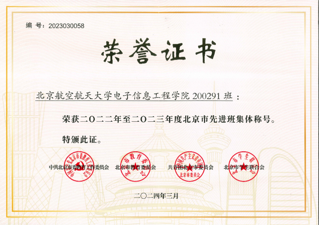 200291班获北京市先进班集体