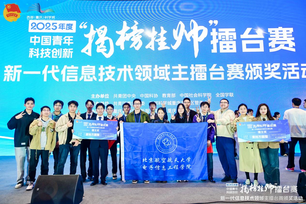北航新闻网11月25日电(通讯员 聂静)在2024年度“揭榜挂帅”专项赛及2025年度中国青年科技创新“揭榜挂帅”擂台赛专项赛中,北航以22项擂主的亮眼战绩登顶全国第一,其中电子信息工程学院斩获4项擂主。这份荣誉背后,一个本科班级的表现尤为亮眼——230291电磁安全试验班,班级33名学子,3人以第一作者身份获得竞赛擂主,1人以第一作者身份获得一等奖,22名同学作为参赛作者获奖,用青春力量诠释了空天志、电磁魂!