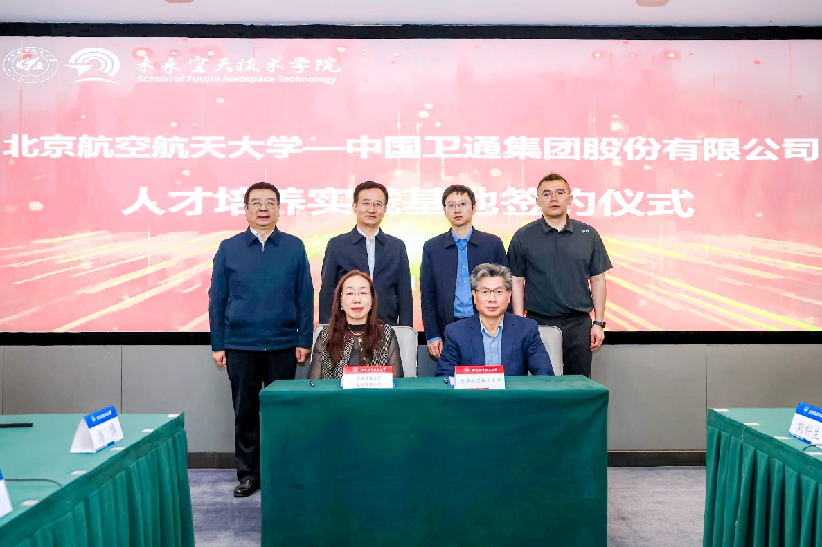 北航新闻网11月28日电(通讯员 程薇 李宝珠)11月26日上午,“北京航空航天大学-中国卫通集团股份有限公司人才培养实践基地”签约仪式在北航如心会议中心中报告厅举行。北航副校长吴江浩,中国卫通党委副书记、总经理马海全,以及双方相关部门负责人出席仪式。签约仪式由北航未来空天技术学院主办,学院党委书记刘科生主持。