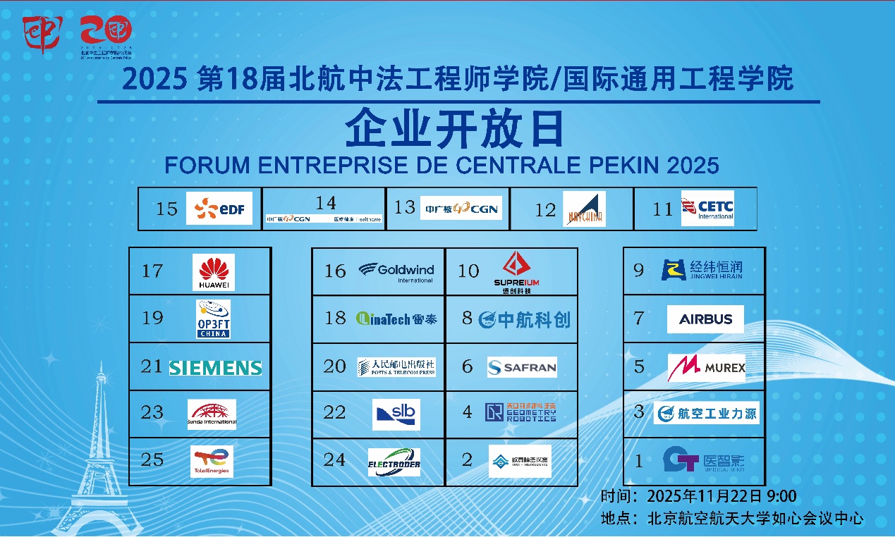 此次“企业开放日”不仅为北航学子提供了职业发展机会,也为企业搭建了一个高效、精准的人才引进与品牌的展示平台。未来,中法工程师学院/国际通用工程学院将继续深化校企合作机制,拓展国际合作资源,助力学生成长为具有国际视野、创新精神与实践能力的卓越工程师。
