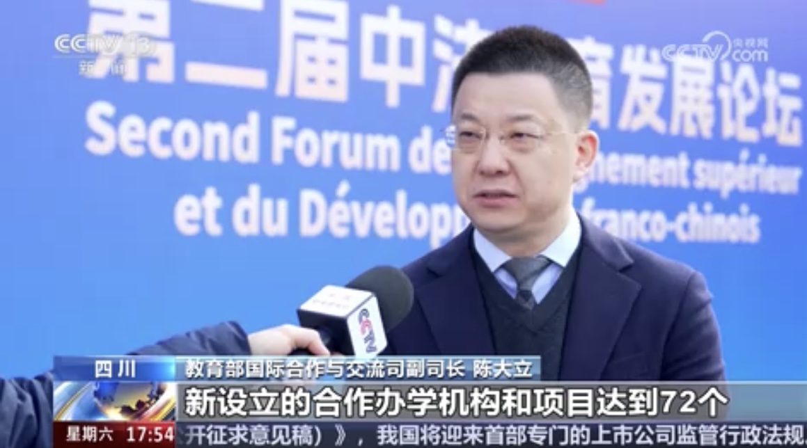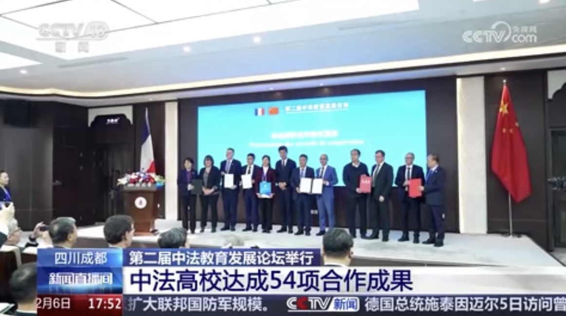 【主持人】昨天,中国教育部与法国高等教育研究和空间事务部在四川成都举办了第二届中法教育发展论坛,达成了丰富的合作成果。中法高校签署了54项合作成果。