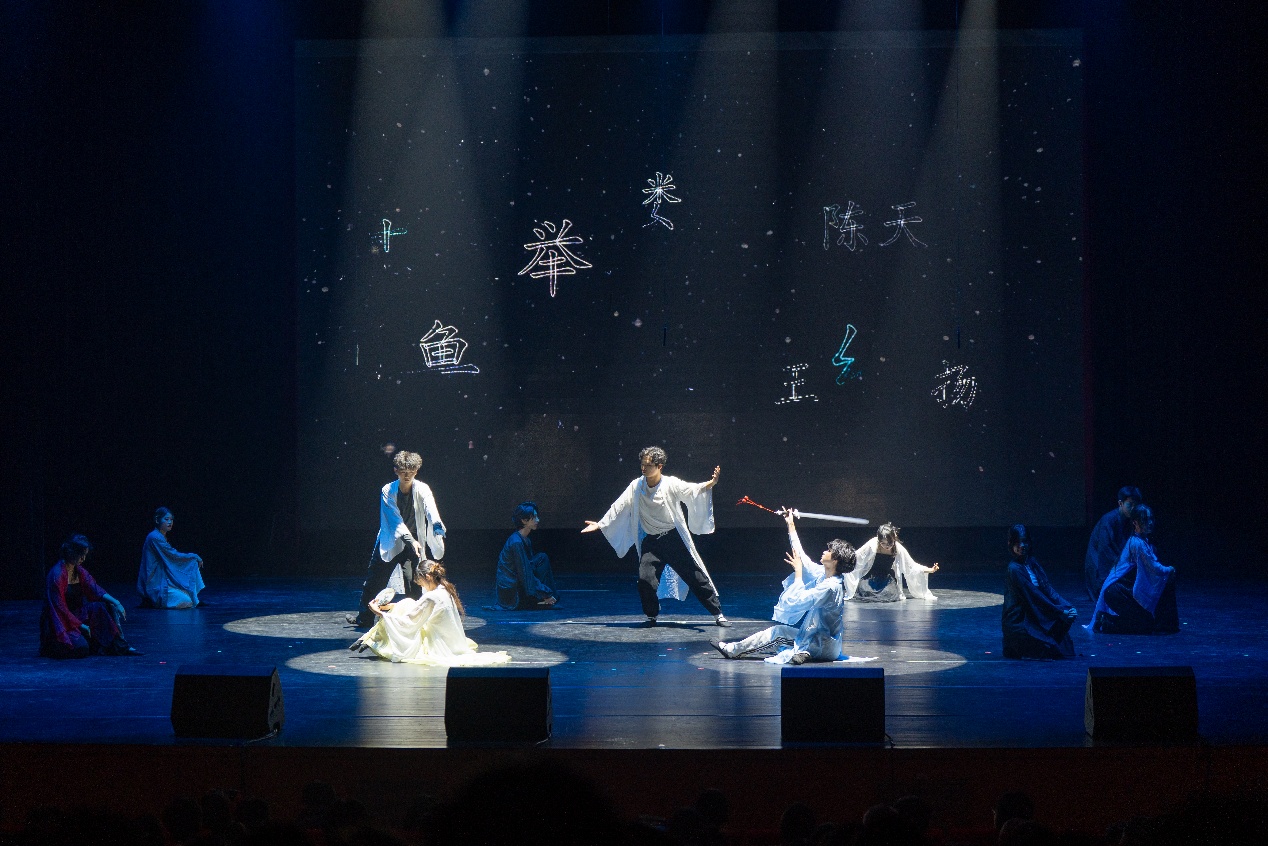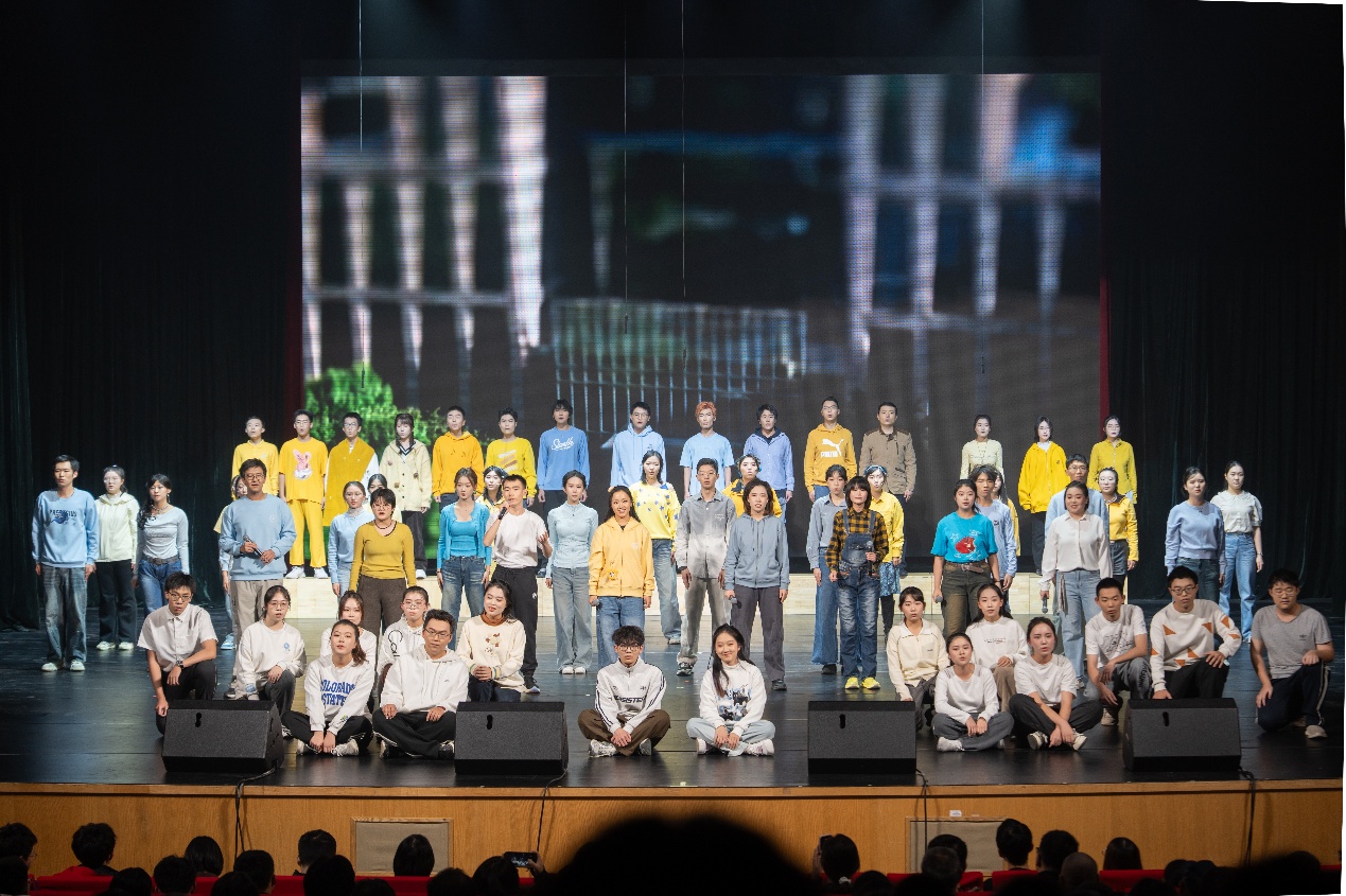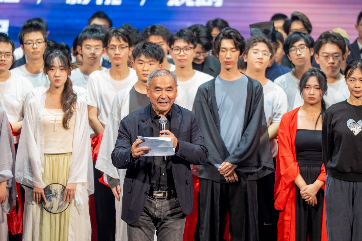 演出尾声,全体演员登台谢幕,美育中心主任兼新媒体艺术与设计学院院长沈旭昆发表讲话,强调了学校对美育工作的高度重视和艺科融合的发展理念,对全体指导及参演教师的辛勤付出和参演学生的精彩表现给予高度肯定与衷心感谢。