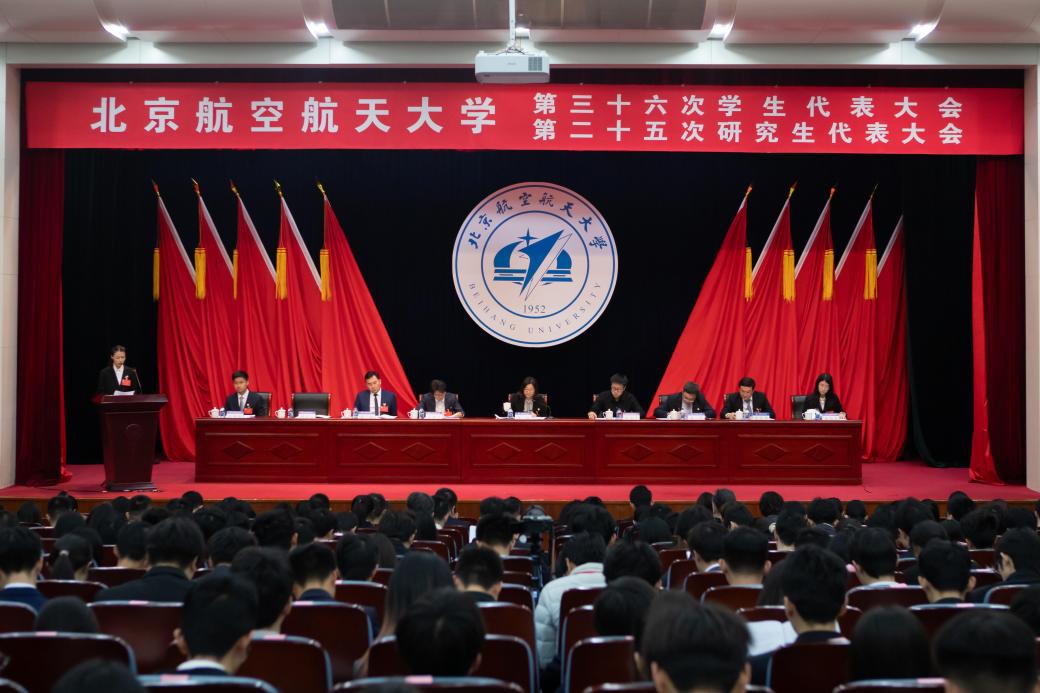 开幕会后,第三十六次学生代表大会于学院路校区新主楼第二报告厅举行。会上审议并通过了北京航空航天大学学生会章程(草案)、北京航空航天大学第三十六次学生代表大会提案工作报告,完成了对第三十六届学生代表大会常任代表、第三十六届学生会主席团成员的选举。大会选举了王远铭、孙睿阳、宋连熙、陈耶冰、范学成为第三十六届学生会主席团成员。