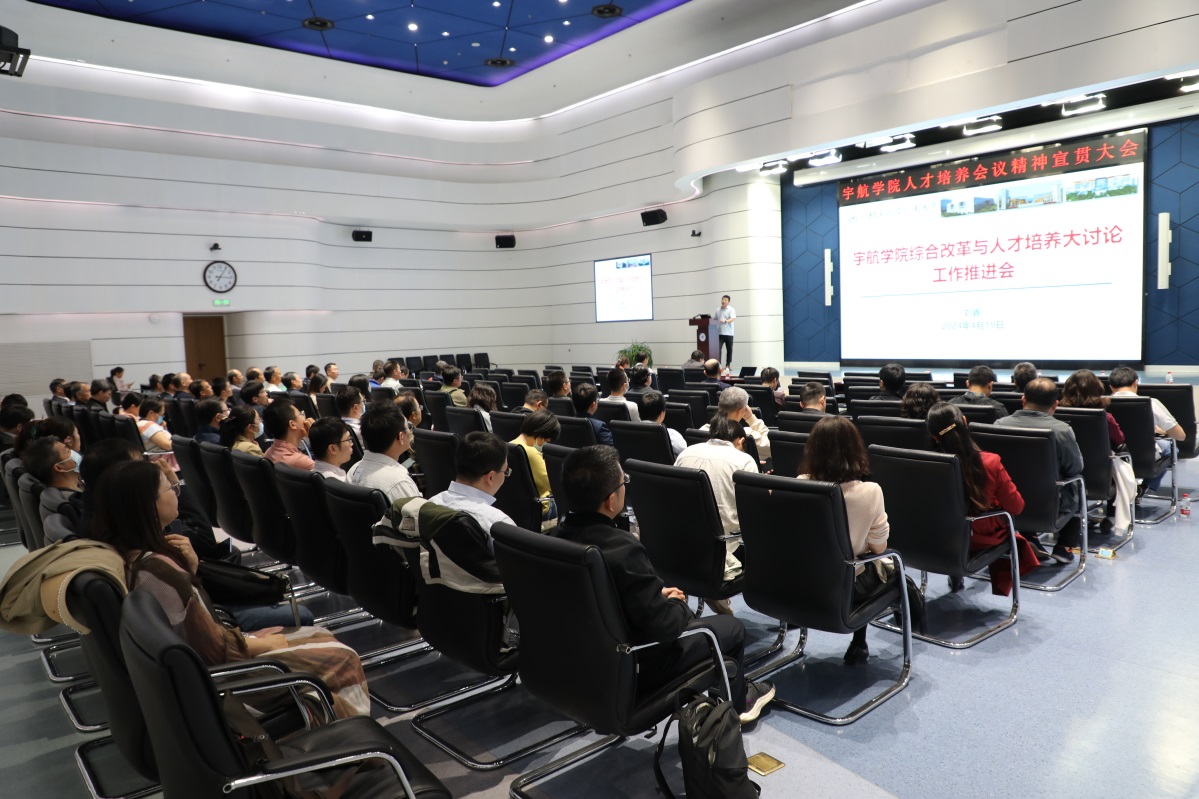 北航新闻网4月22日电(通讯员 许坤梅)4月19日,宇航学院在沙河校区召开学校人才培养会议精神宣贯大会暨学院综合改革与人才培养大讨论工作推进会,正式开启学院人才培养系列主题大讨论的序幕。宇航学院领导班子成员、全体教职工等120余人参会,会议由宇航学院党委书记刘睿主持。