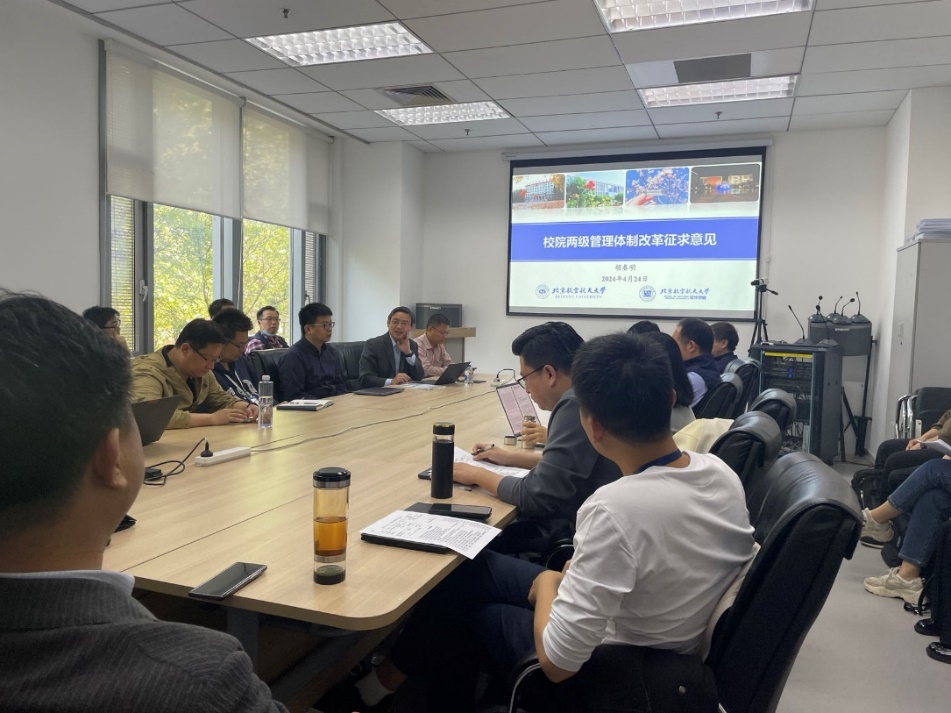 北航新闻网4月25日电(通讯员 王延吉)为了深入贯彻落实学校校院两级管理体制改革要求和人才培养大会精神,4月24日下午,软件学院组织召开校院两级管理体制改革方案第一轮意见征集暨本研培养方案修订研讨会,宣贯学校对校院两级管理体制改革工作的要求和部署,对《软件学院综合改革工作方案(草案)》,采取分组讨论的形式向全体教职工征求意见,学院领导班子成员和全体教职工参加会议。