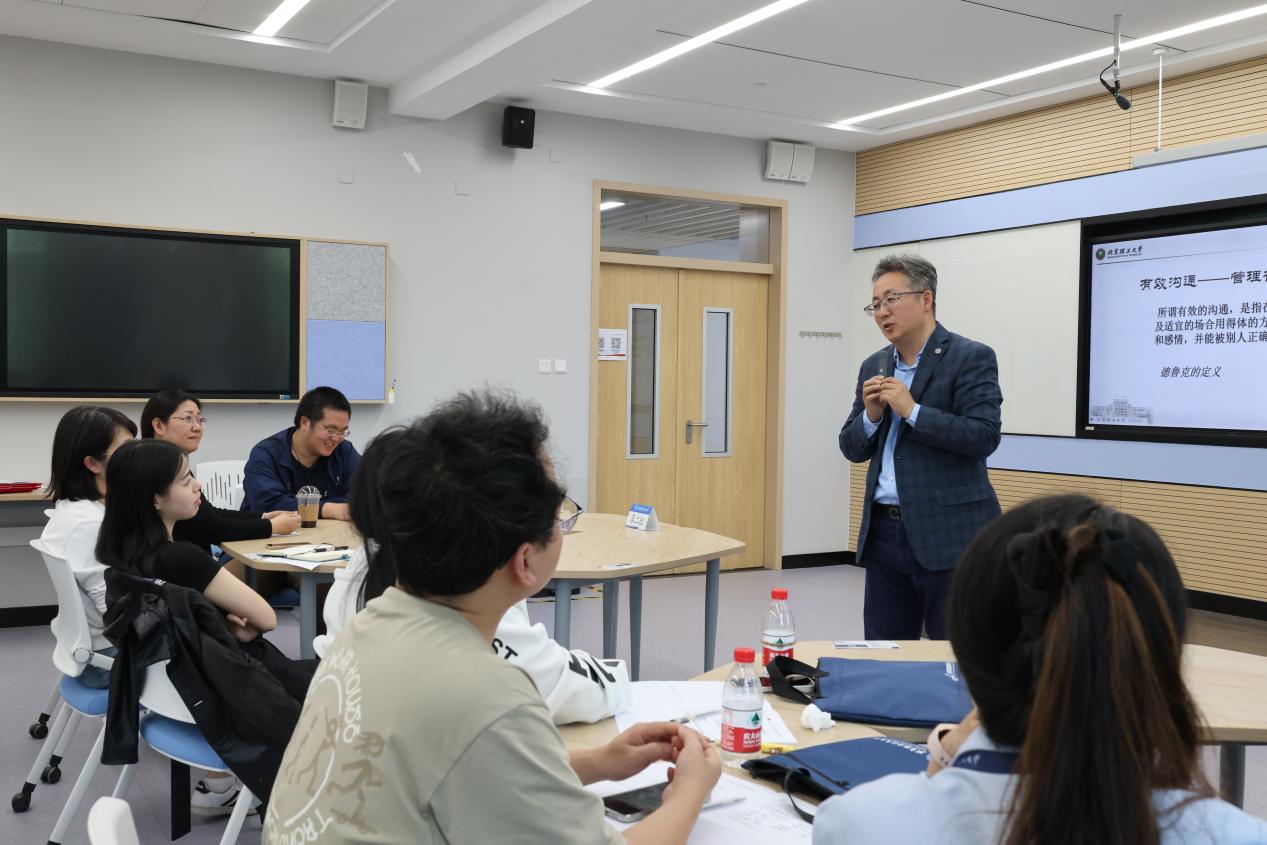 为聚焦内涵发展与可持续发展,为一流人才培养提供强有力的支持,更好地服务管理服务育人核心职能,全方位提升管理综合素养,机关党委、教师发展中心联合搭建系统化、精准化、互动性强的学习平台,组织2024年青年教职工管理业务培训基础班,赋能青年教师成长发展。本期青年教职工管理业务培训基础班历时两周,来自学院路校区、沙河校区、杭州国际校园的110余位新入职管理服务系列青年教职工参加。党委宣传部副部长、新闻中心副主任余敏作《守正创新,共同奏响北航好声音》专题讲座,她围绕深入学习习近平总书记关于宣传思想文化工作的重要论述,结合北航宣传工作实际和详实案例,介绍了新媒体时代新闻传播的特点,分析了宣传工作的重要性和难点,生动阐述了进一步做好新形势下的高校宣传工作的方式方法。积极心理体验中心主任马喜亭教授作《建设积极心态,服务师生成就自己》专题讲座,他分析了管理育人、服务育人的重要性,强调青年教职工要始终坚持以师生为本,强化科学管理对道德涵育的保障功能,引导青年教职工在管理服务中建设积极心态,助力营造治理有方、管理到位、风清气正的育人环境。航空发动机研究院陈志英教授作《传承红色基因 凝聚北航力量》专题讲座,他融合党史和校史,结合航空航天领域典型事迹,围绕国家需求与北航奇迹、权利义务与责任担当、管理育人与价值引领三个方面,形象生动、全面系统地解读了以“空天报国”为核心的北航精神的深刻内涵。党政办公室机要室主任桑济昌作《党政机关公文处理实务》专题讲座,他从公文的概念入手,结合实例详细讲解了公文格式的规范性要求,深入解读了规范性文件的具体定义和全过程管理要求。网络信息中心副主任周林志作《以信息化带动管理服务协同化、服务化、规范化、精细化》专题讲座,他详细阐述了北航信息化的发展历程,全面系统展示了北航信息化建设在基础服务迭代拓展、公用平台优化体验、数仓深化统筹、安全加固升级、数智赋能人才培养创新等五方面的有效举措与显著成效。北京理工大学管理学院赵洱岽教授作《管理沟通—组织中的语言表达与沟通科学》专题培训,聚焦组织沟通,结合实际案例,详述了如何采用有效的沟通助力组织目标的实现和组织文化的塑造。