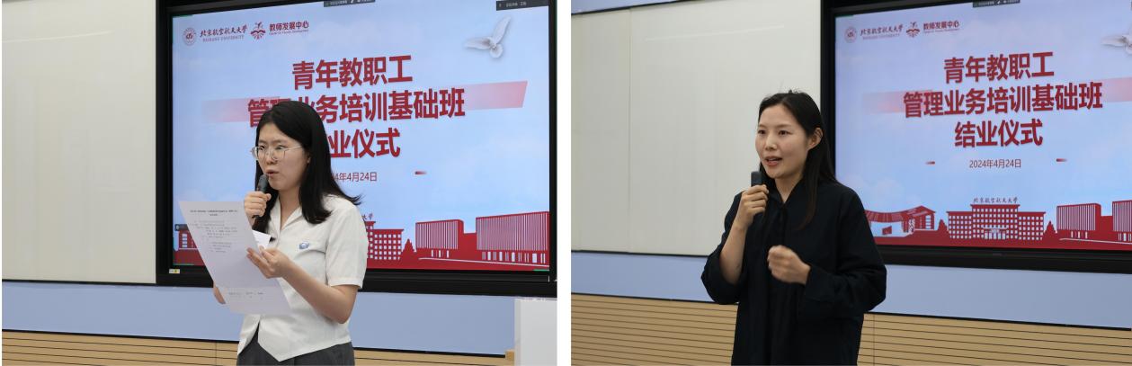北航新闻网4月26日电(通讯员 王孚尹 王旭/文 丁奕飞 郎许诺/摄影)4月24日下午,由机关党委、教师发展中心联合组织的北航青年教职工管理业务培训基础班管理沟通能力专题培训及结业仪式在学院路校区老主楼主南303教室和杭州国际校园同步举行。机关党委、人力资源部/党委教师工作部、教师发展中心、可靠性与系统工程学院负责人,特聘专家代表及培训班全体学员参加。结业仪式由教师发展中心副主任马坤主持。