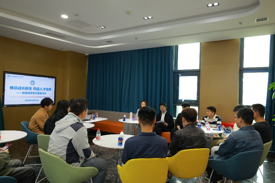 座谈会上,各位学生代表踊跃发言,重点从研究生培养机制、课程建设、出国境交流、培养流程、文体活动设置等多个方面进行交流,为航发院的人才培养工作积极建言献策。