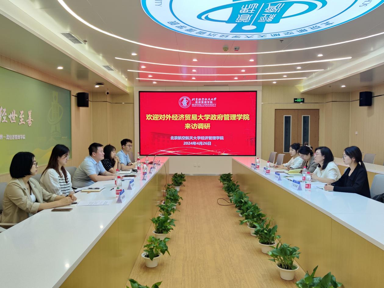 对外经济贸易大学政府管理学院党委副书记洪洁敏对北航经济管理学院的热情接待表示感谢,并围绕人才培养调研提纲,就学生思想引领、学生党建、积极心理、就业指导工作等方面开展专题研讨。