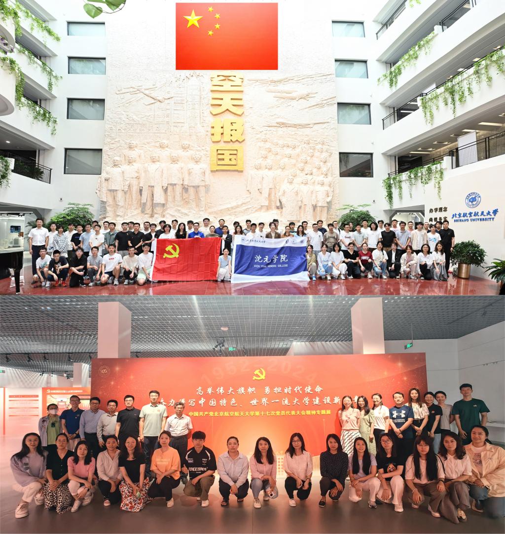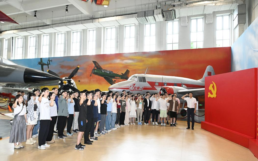 在航空航天博物馆一层,学院师生党员集体重温入党誓词。结合落实学校庆祝中国共产党成立103周年暨党建经验交流会要求,号召全体党员和师生更加紧密地团结在以习近平同志为核心的党中央周围,弘扬伟大建党精神,发挥先锋模范作用,以高质量党建引领事业高质量发展,为中国特色、世界一流大学建设贡献力量,为强国建设、民族复兴作出新的更大贡献。