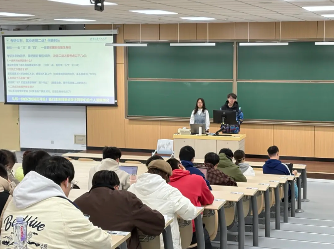 本科2021级进入本科阶段最后一学期。辅导员着重讲解了毕业设计节点、考研复试、春招求职等事宜,鼓励同学们稳步推进毕业设计的同时,向着自己的发展规划方向迈出行动,在尝试探索中让最后一学期的大学生活不留遗憾。