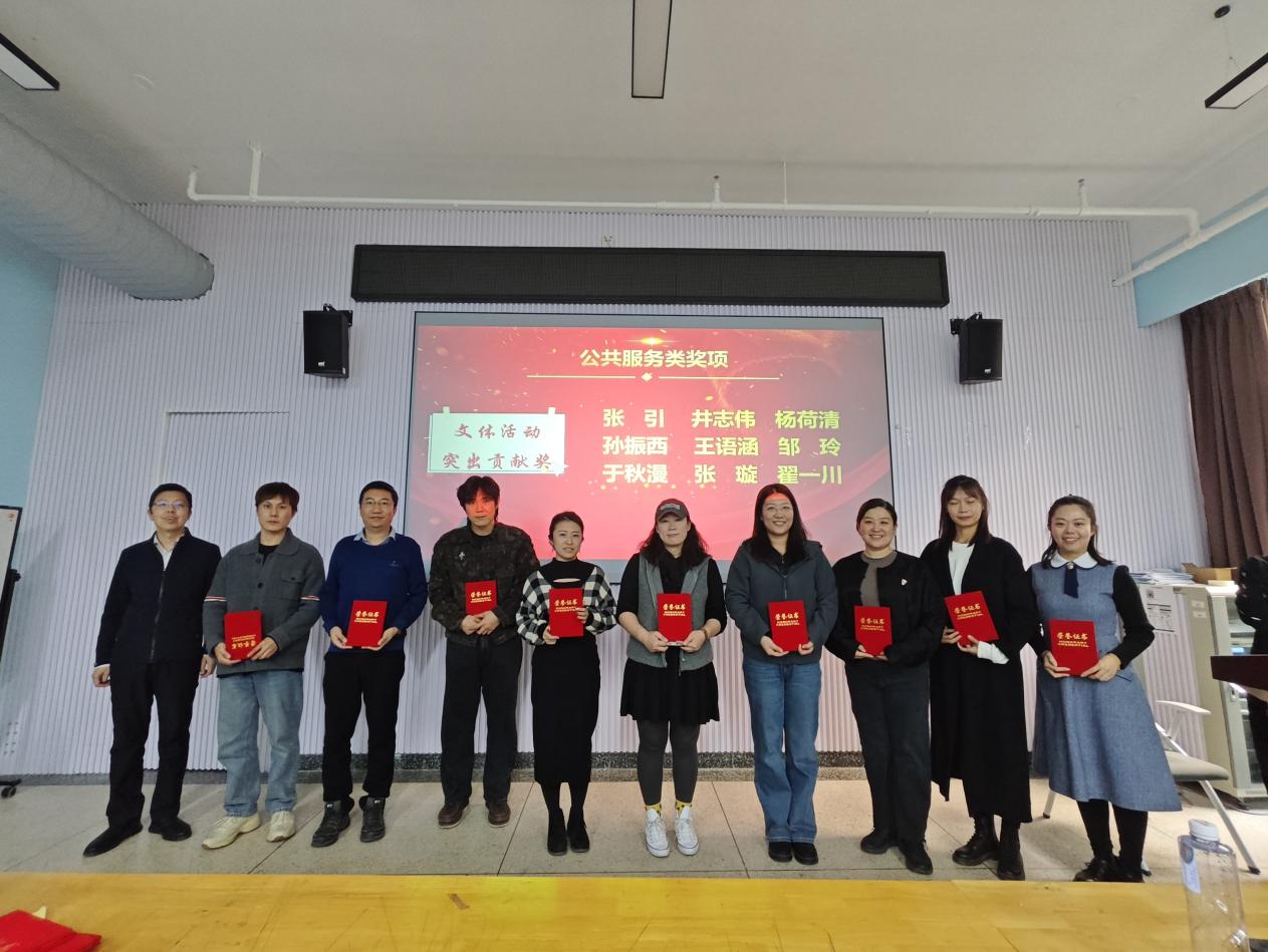 会议第二项议程是对2024年度在人才培养、科学研究、国际交流、公共服务等方面为学院发展做出突出贡献的老师进行表彰。学院领导为获奖教师颁发了足球大赢家的荣誉证书,并号召全体教职工以他们为榜样,立足岗位,开拓创新,为学院发展贡献力量。