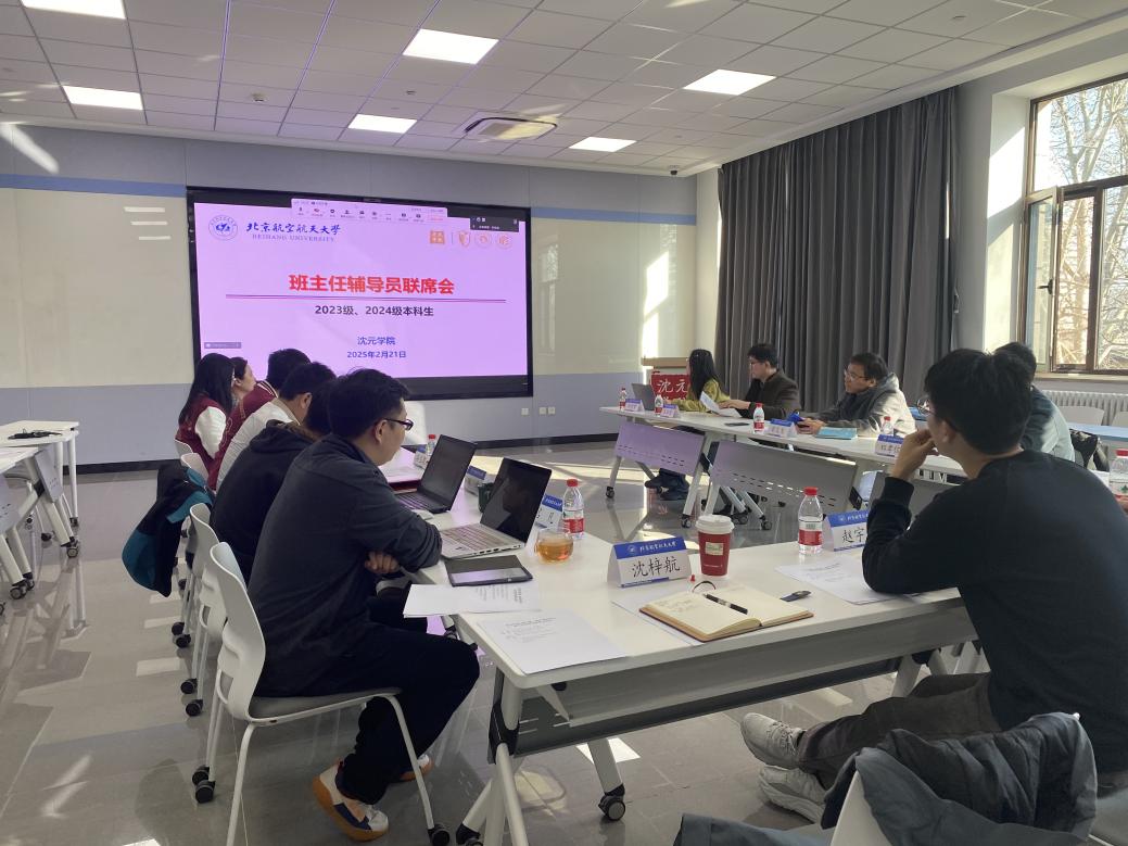 北航新闻网2月28日电(通讯员 宫凡)新学期伊始,为精准把握学生动态、提升思政育人实效,沈元学院总体部署,于近日组织召开本研辅导员专题工作会、班主任-辅导员联席会,深入两校区学生宿舍、课堂开展走访,本研全覆盖开展开学大班会,以“部署-落实-反馈”全链条护航新学期平稳开学。