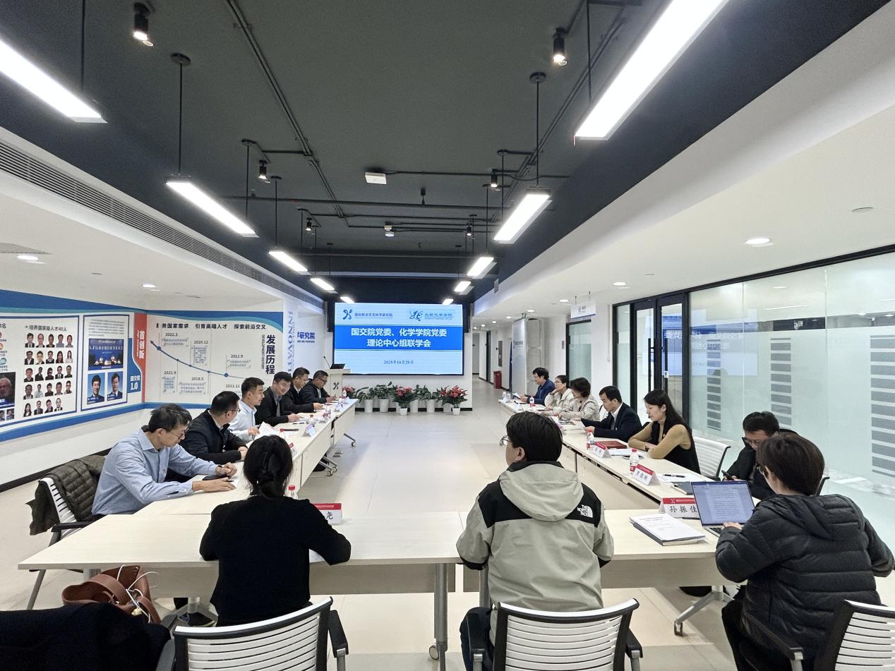 北航新闻网11月3日电(通讯员 崔腾 潘思尧)10月29日,国际前沿交叉科学研究院(以下简称“国交院”)党委与化学学院党委理论学习中心组开展联学,专题学习党的二十届四中全会精神,研讨“十五五”规划编制和前沿交叉领域学科融合、青年人才发展等工作。两院理论中心组成员、青年教师代表出席会议。