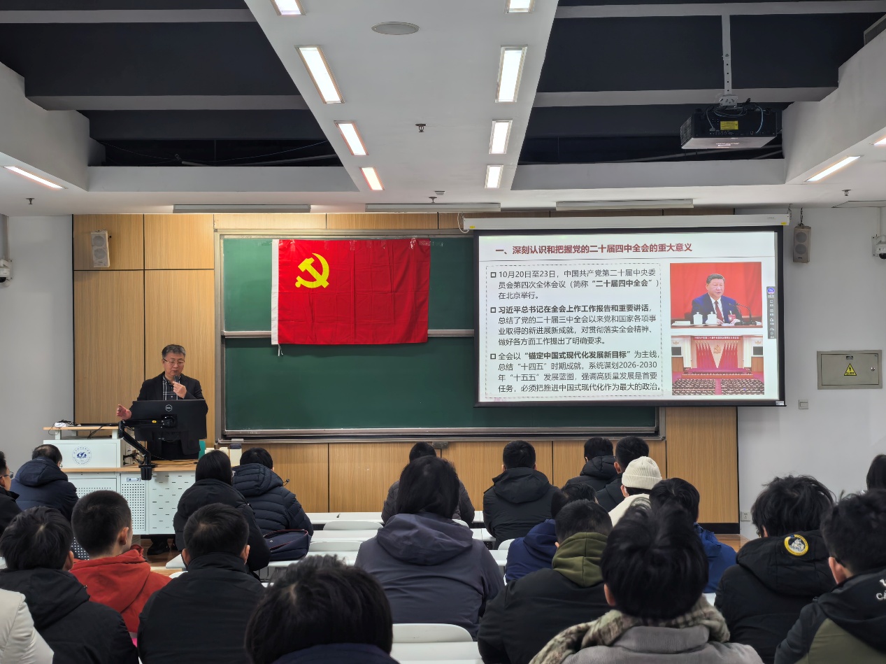 此前,学院已通过组织召开党委理论学习中心组(扩大)学习会、党支部书记联席会等多种形式,先学一步、学深一层,专题传达学习党的二十届四中全会精神,为在全院范围内深化学习奠定了坚实基础。全院师生将进一步把思想和行动统一到党中央决策部署上,把力量凝聚到“十五五”规划实施上,以更坚定的信心和更务实的举措推动学院发展、服务中国式现代化进程。