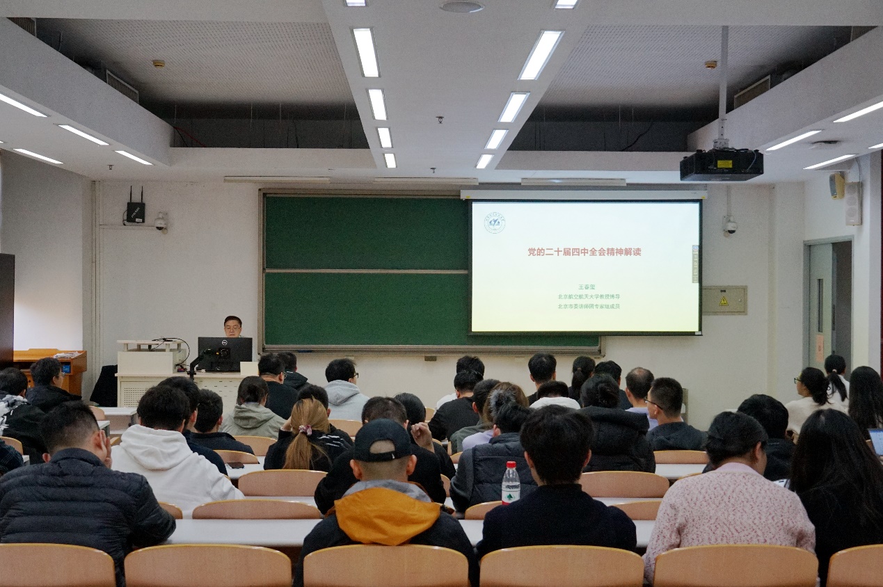 北航新闻网11月24日电(通讯员 井彦祺)11月14日下午,航空发动机研究院(简称“航发院”)党委召开党支部书记联席(扩大)会,专题学习党的二十届四中全会精神。会议特邀马克思主义学院教授王春玺作专题党课。航发院全体党支部书记、师生党员代表、积极分子代表参加党课学习。