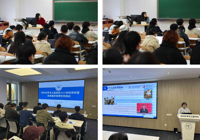 10月29日,材料科学系师生联合党支部等多支部联合开展“学习贯彻全会精神,赋能材料学科创新”主题党日活动,通过深度解读全会《公报》核心要义、讲授《从稀土永磁材料发展看中国式现代化》专题党课,深刻领会推进中国式现代化的战略部署。各学生党支部积极响应,250177班本科生集体观看专题思政课;本科低年级联合党支部围绕“深入推进党的自我革命”开展专题学习,研读《习近平谈治国理政》相关篇目,不断强化党员纪律意识和党性修养。