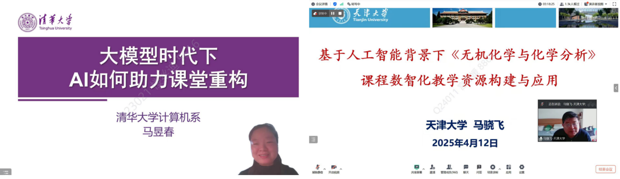 4月12日,第五讲由清华大学马昱春教授作了题为“大模型时代下ai如何助力课堂重构”的专题讲座。她以课堂教学为出发点,生动地讲述了大模型究竟是什么。在谈到面向教学的ai时,她展示了如何制作面向自己课程的个性化智能体,并根据自己的授课观察分享了ai在教学中的应用心得,以及利用deepseek重构教学的思考。天津大学马骁飞教授做了题为《基于人工智能背景下 <无机化学与化学分析> 课程数智化教学资源构建与应用》的报告。他分享了如何利用人工智能平台实现对课程辅助,通过混合式教学,以及利用ai平台引进知识图谱和数字化教材建设,对学生的学习全过程做记录,形成更全面的评价体系,提高教学质效。