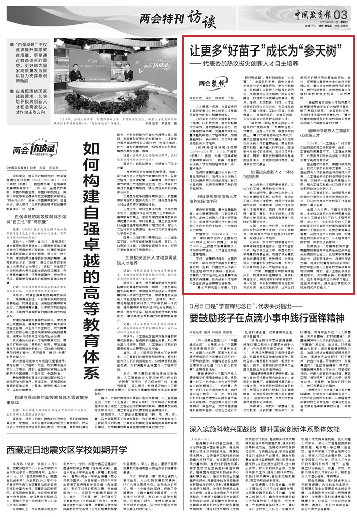 《中国教育报》2025年3月6日(记者 梁丹 林焕新 于珍)报道: