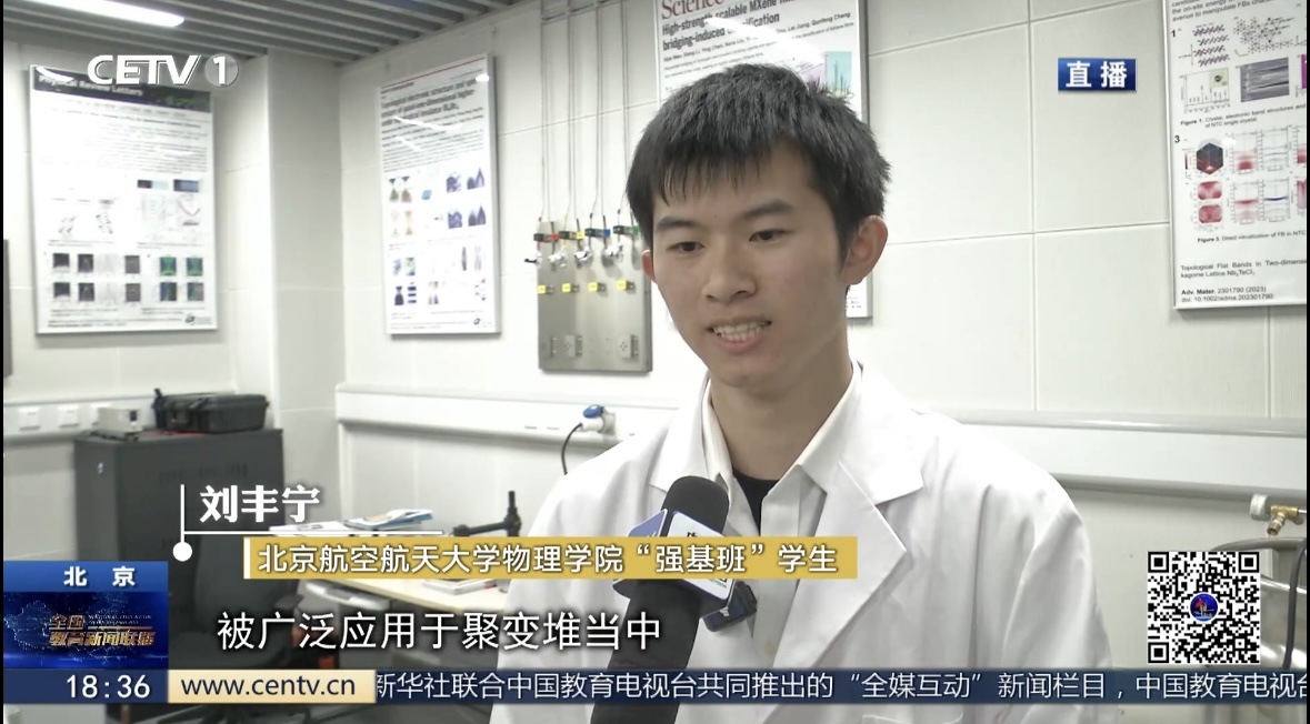 【同期】北京航空航天大学物理学院“强基班”学生 刘丰宁:我觉得物理吸引我的地方在于,首先是它的这个推导的这种感觉,其次是它可以真正的联系到很多实际的问题,我是希望未来能够在这个基础研究领域成为一名科研工作者,然后为国家的基础研究做出自己的贡献。