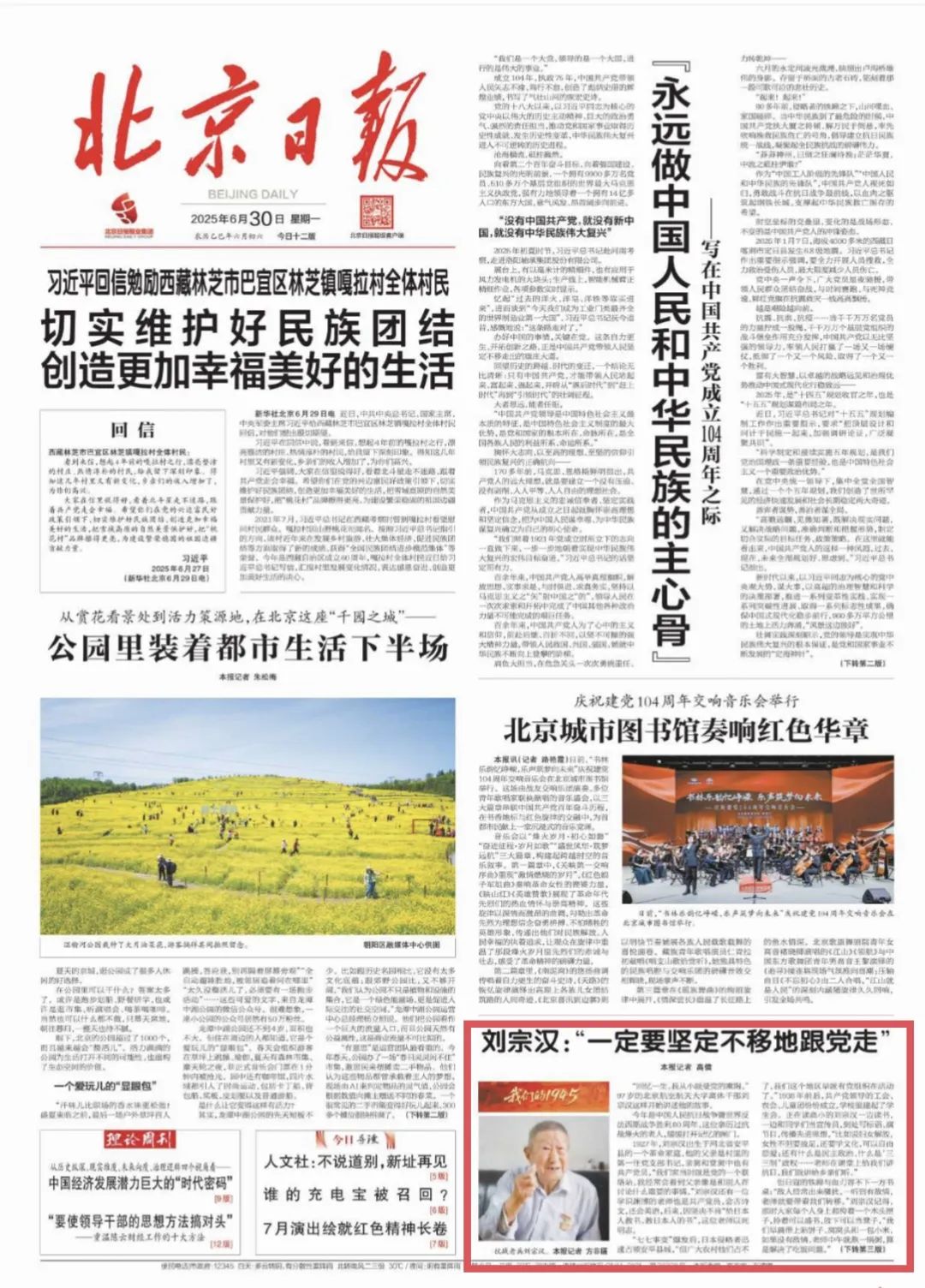 编者按:今年是中国人民抗日战争暨世界反法西斯战争胜利80周年。2025年6月5日起,北京日报头版推出专栏“我们的1945”,深入采访亲历过抗日战争的老战士、老同志以及他们的子女,通过他们一段段真实鲜活的回忆追忆历史,弘扬伟大抗战精神,礼赞英雄主义情怀。北航老同志刘宗汉受邀接受采访,其事迹刊发于2025年6月30日的《北京日报》头版。