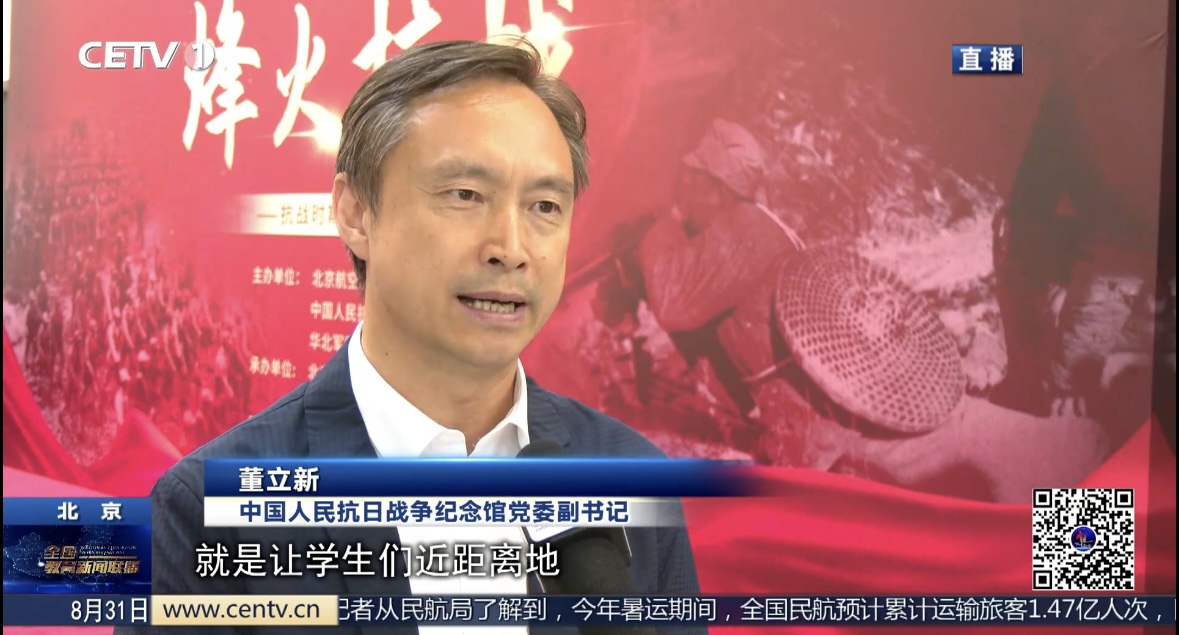 【同期】中国人民抗日战争纪念馆党委副书记 董立新:我们把抗战时期的人民军队的展览搬进校园、送进课堂,走到学生的身边,就是让学生们近距离地来感受革命文物这个抗战精神,来激励学生们的作为一个中国人的志气、底气、骨气,来传承弘扬伟大抗战精神。