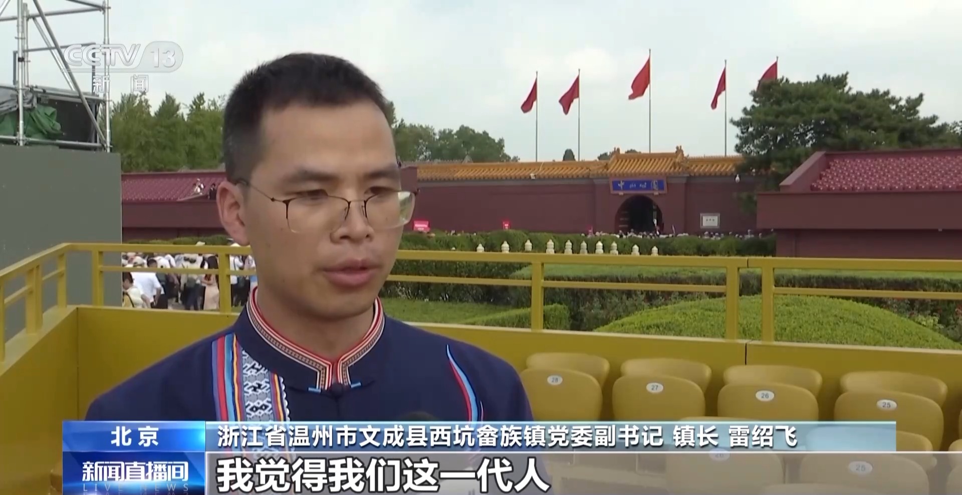 浙江省温州市文成县西坑畲族镇党委副书记 镇长 雷绍飞:在观看阅兵的过程中,我真正感受到了祖国强大,也让我对“正义必胜、和平必胜、人民必胜”有了更直观的感受。作为一名基层干部,我觉得我们这一代人是祖国发展的见证者、受益者,更要成为参与者、建设者,为祖国发展努力奋斗,贡献力量。